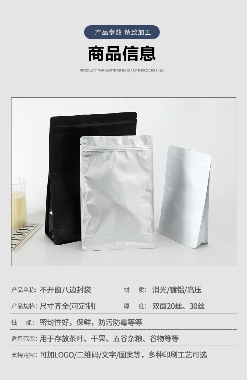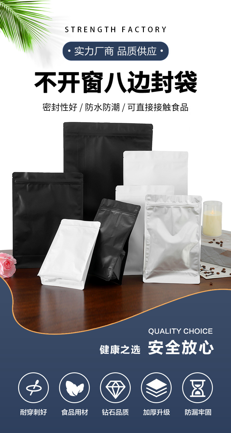 白牛皮纸八边封袋茶叶袋拉链袋宠物食品坚果茶叶袋开窗自立自封袋