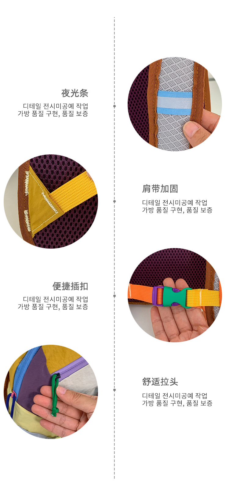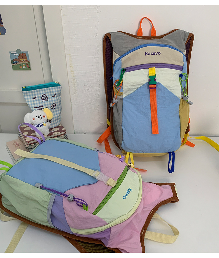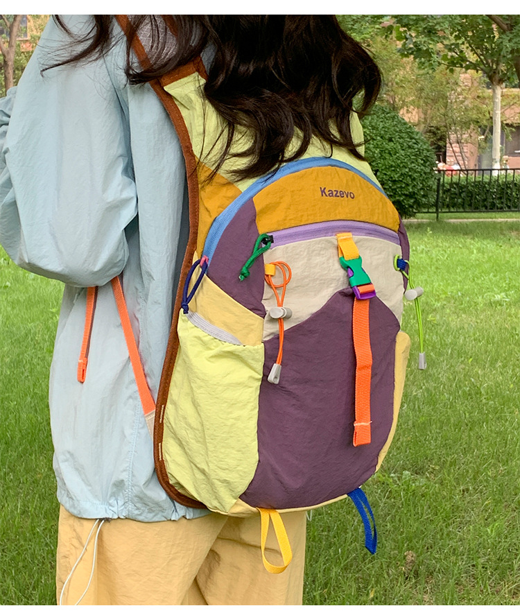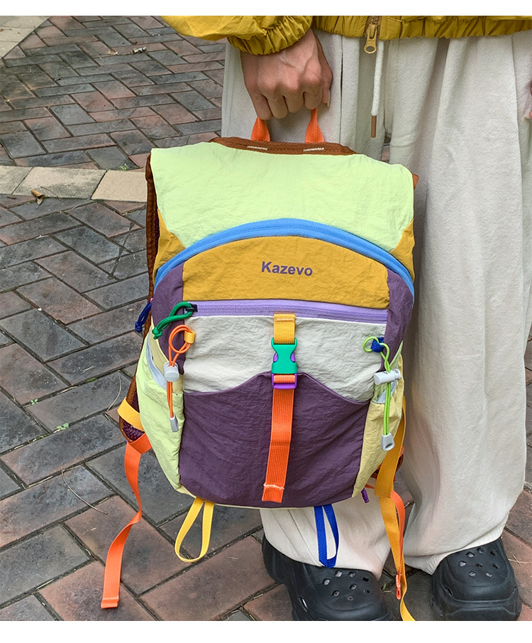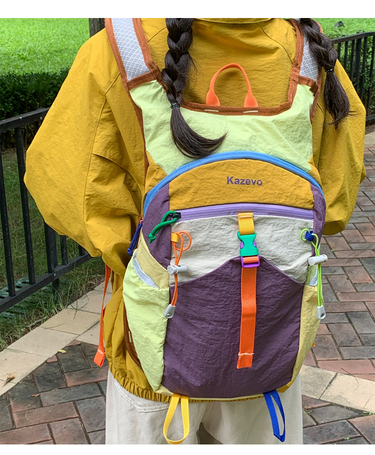 韓国の対照的な色のバックパック、ファッショナブルでクールな大容量防水スポーツバックパック、メンズアウトドア旅行ニッチ登山バッグ