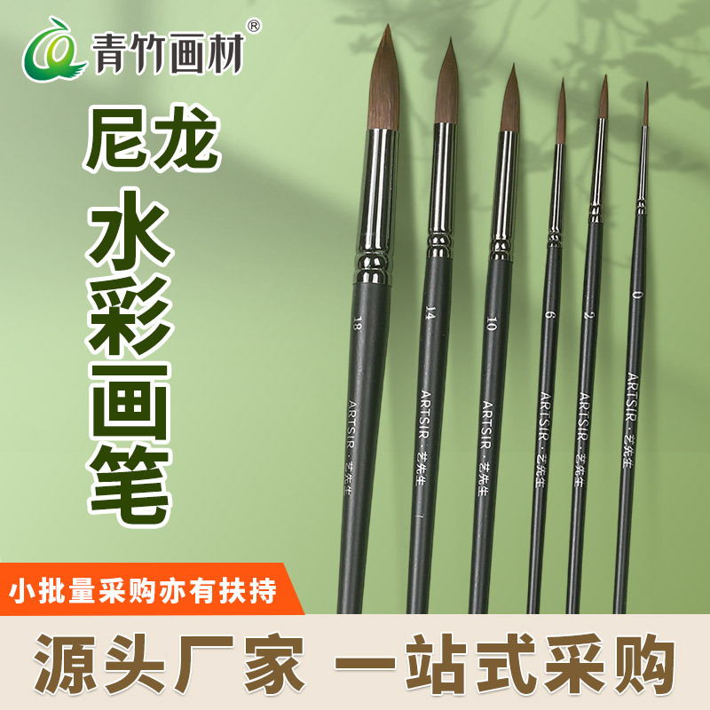 青竹水彩画笔尼龙水彩笔数字油画专用画笔套装绘画水粉笔圆头水彩