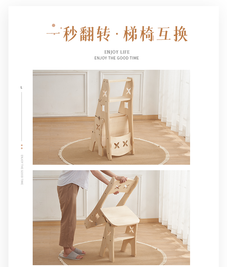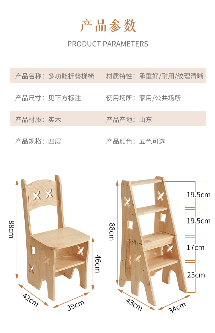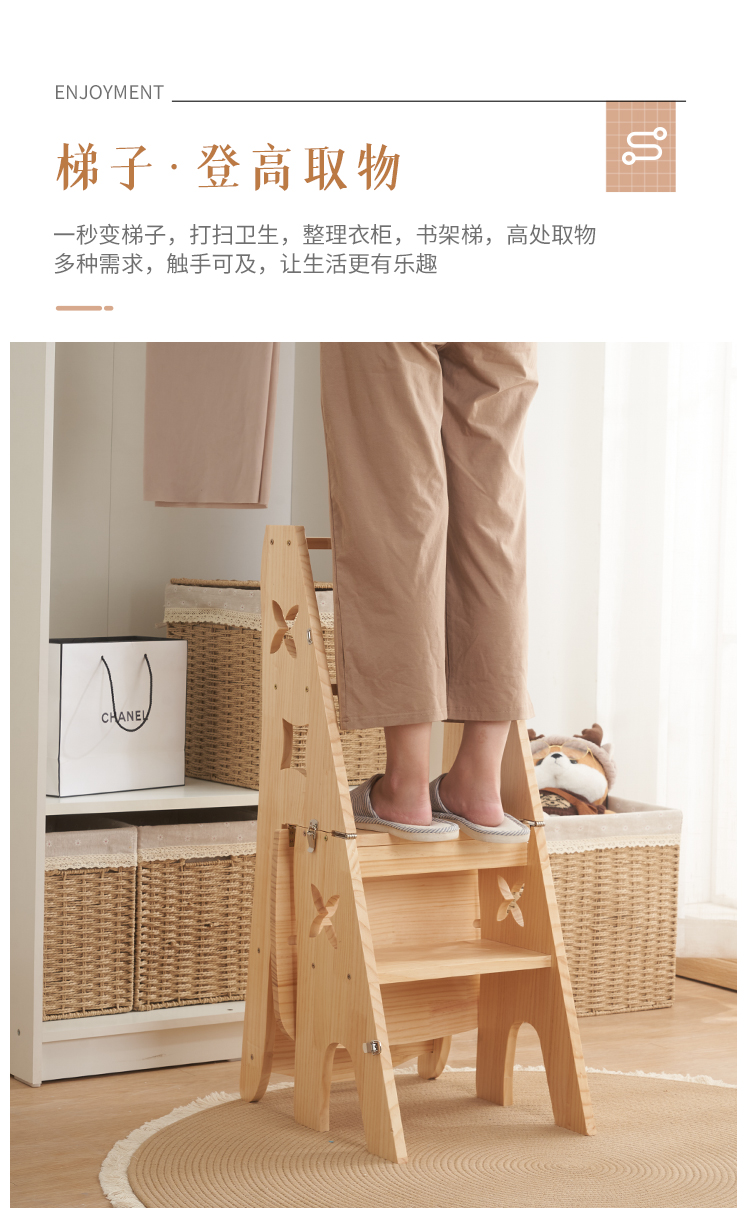 实木家用多功能可折叠凳子两用梯椅室内移动登高四步爬菖