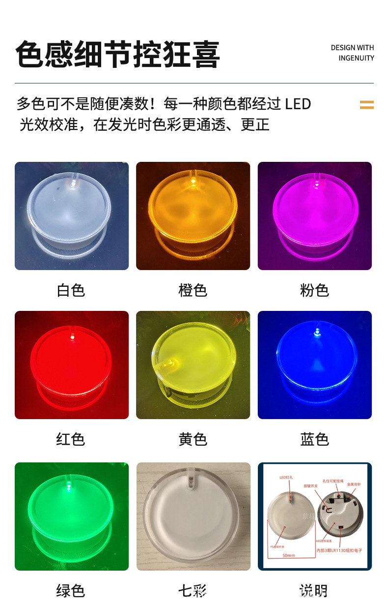 尺寸 黄色,橙色,红色,粉色,白色,绿色,蓝色,混色随机发,七彩快闪光,七彩渐变色