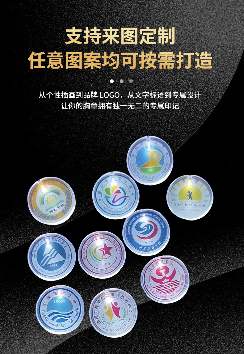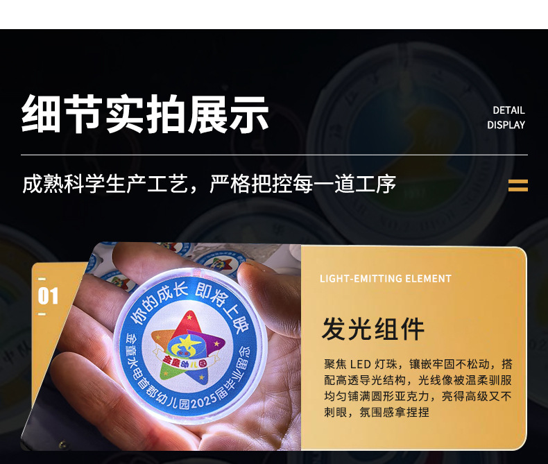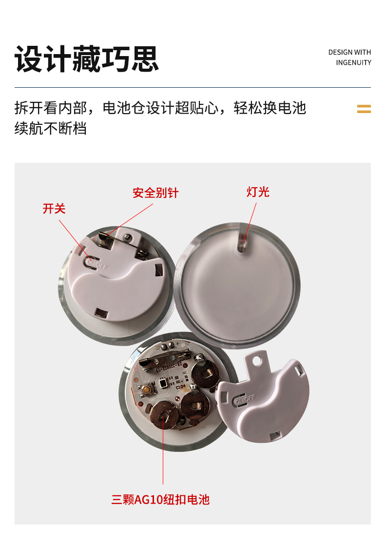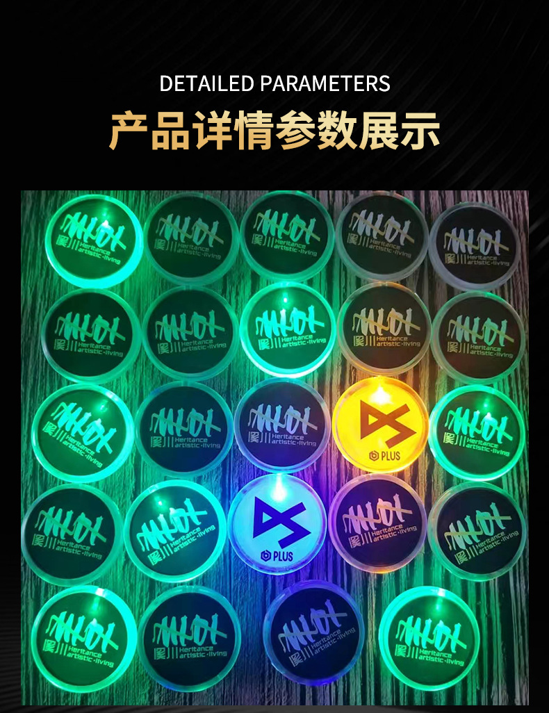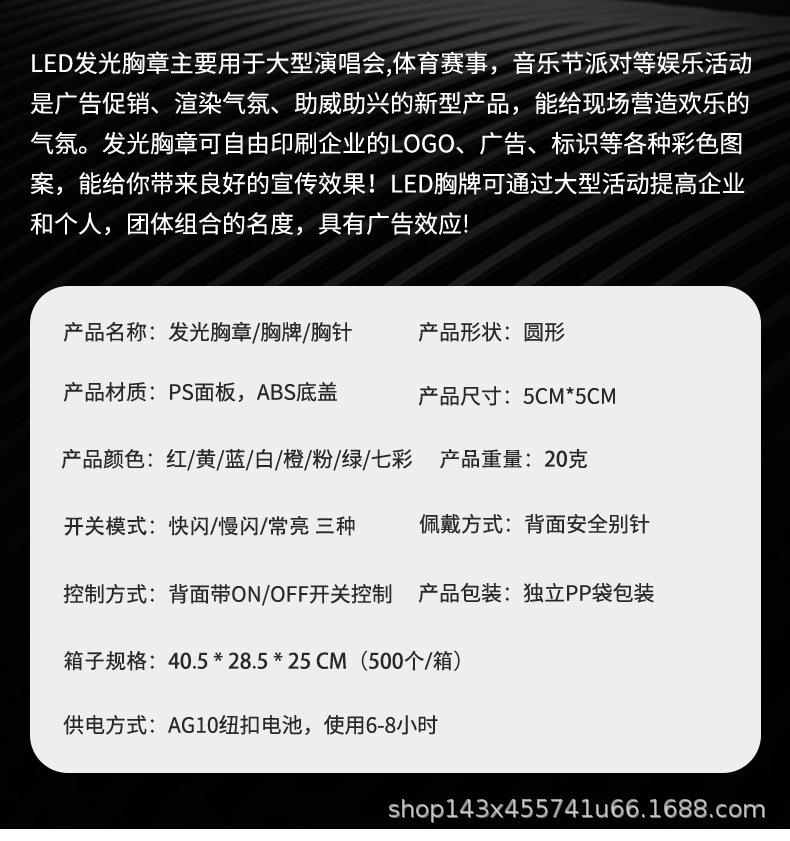 批发圆形发光胸牌 LED发光胸针派对礼品婚庆晚会发光胸章闪光胸牌