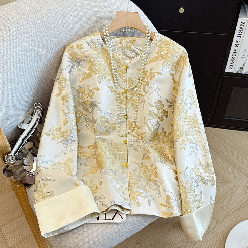 新中式国风黄色外套女秋季2025新款提花刺绣老钱风短款高级感上衣