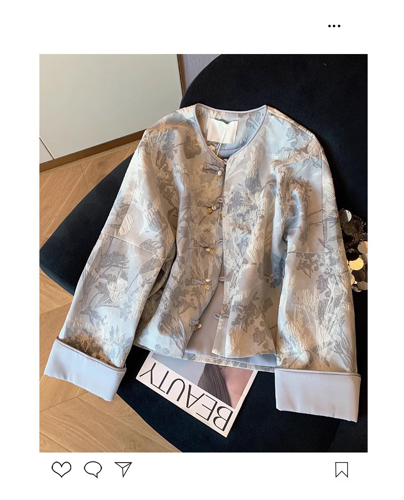 秋新中式国风双面穿人丝提花外套女高级感轻奢立领气质百搭上衣