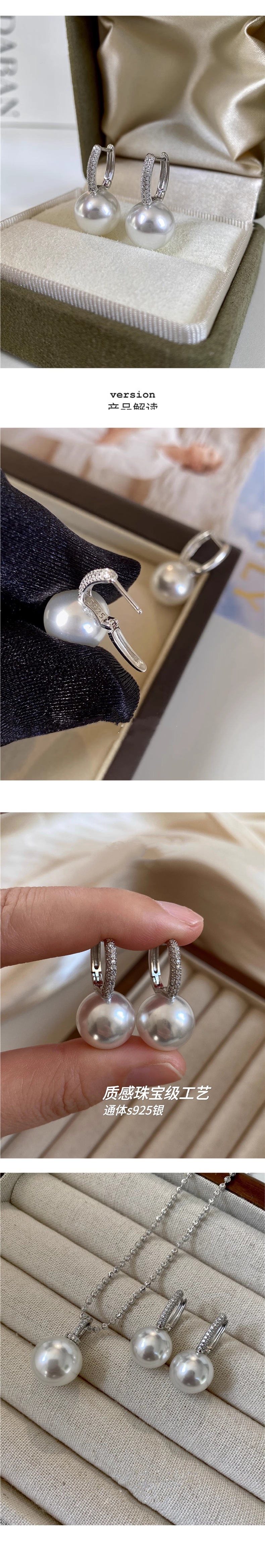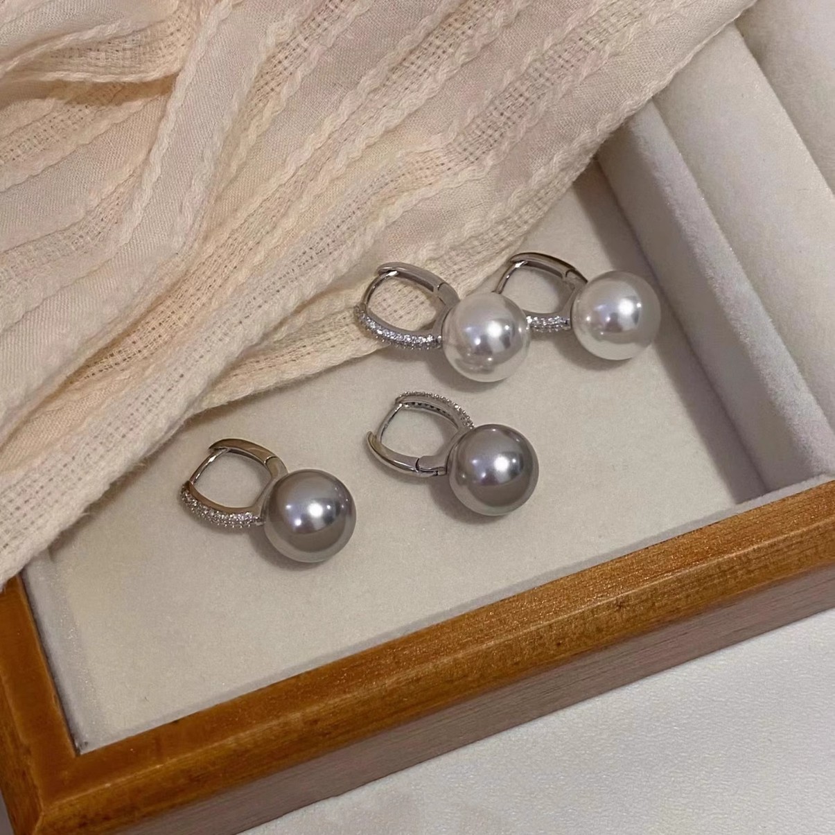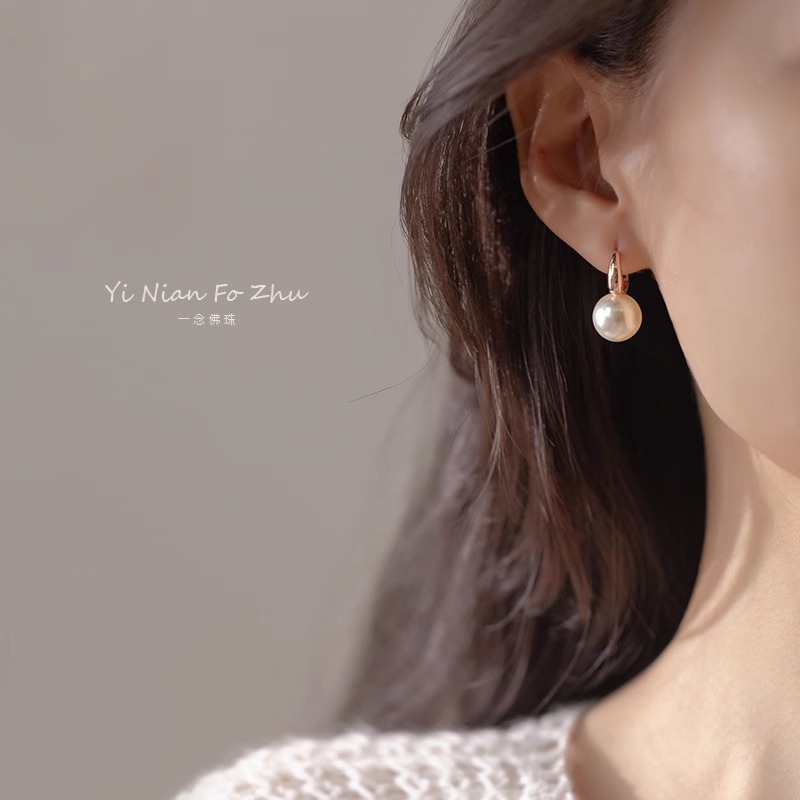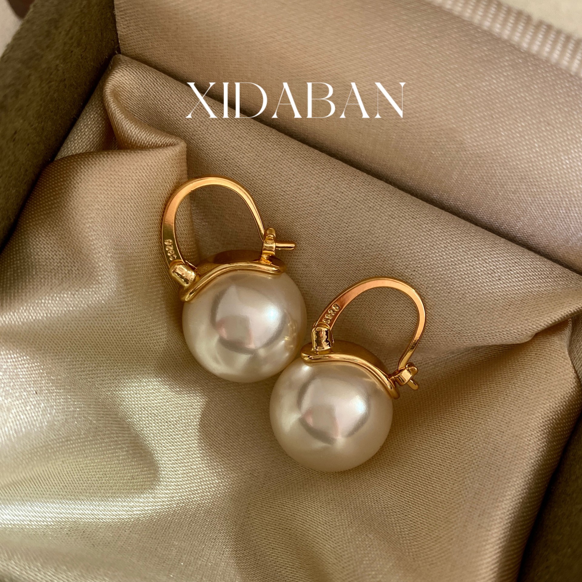 法式轻奢澳白珍珠耳扣925纯银优雅经典百搭简约气质珍珠耳环继灿