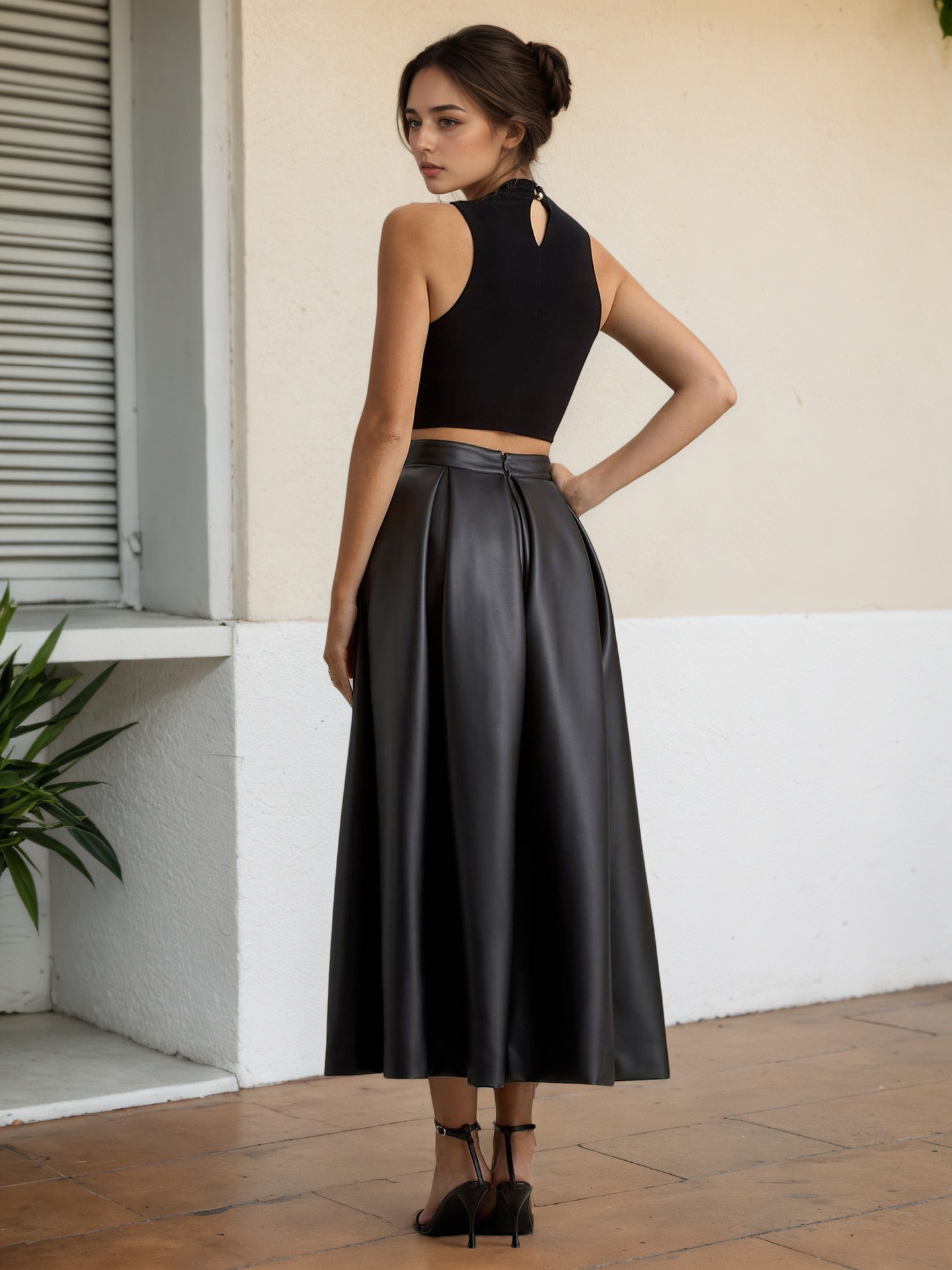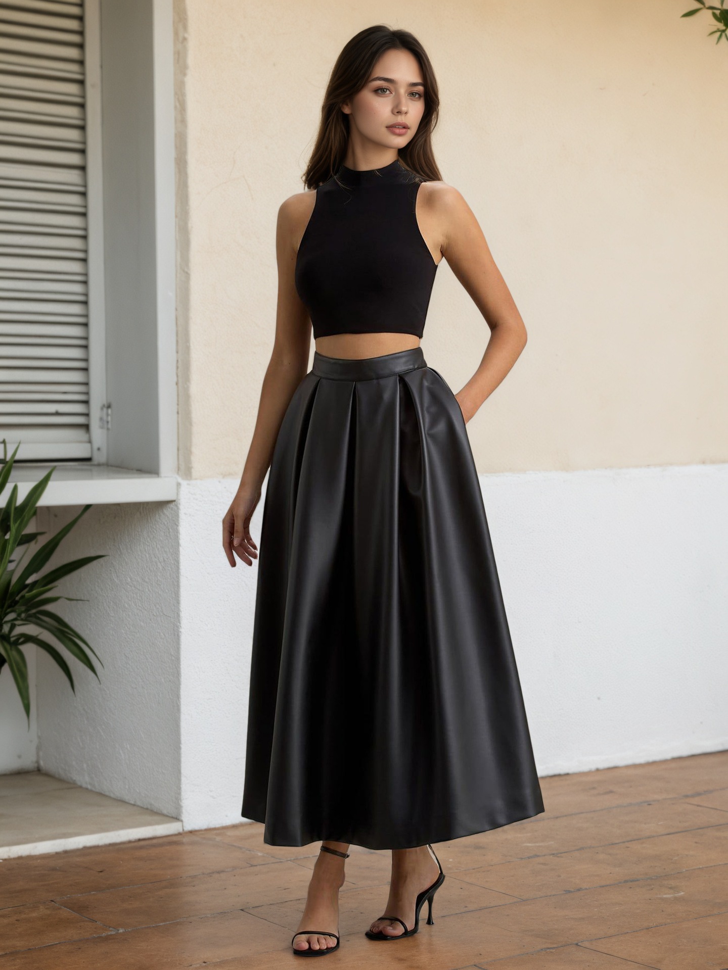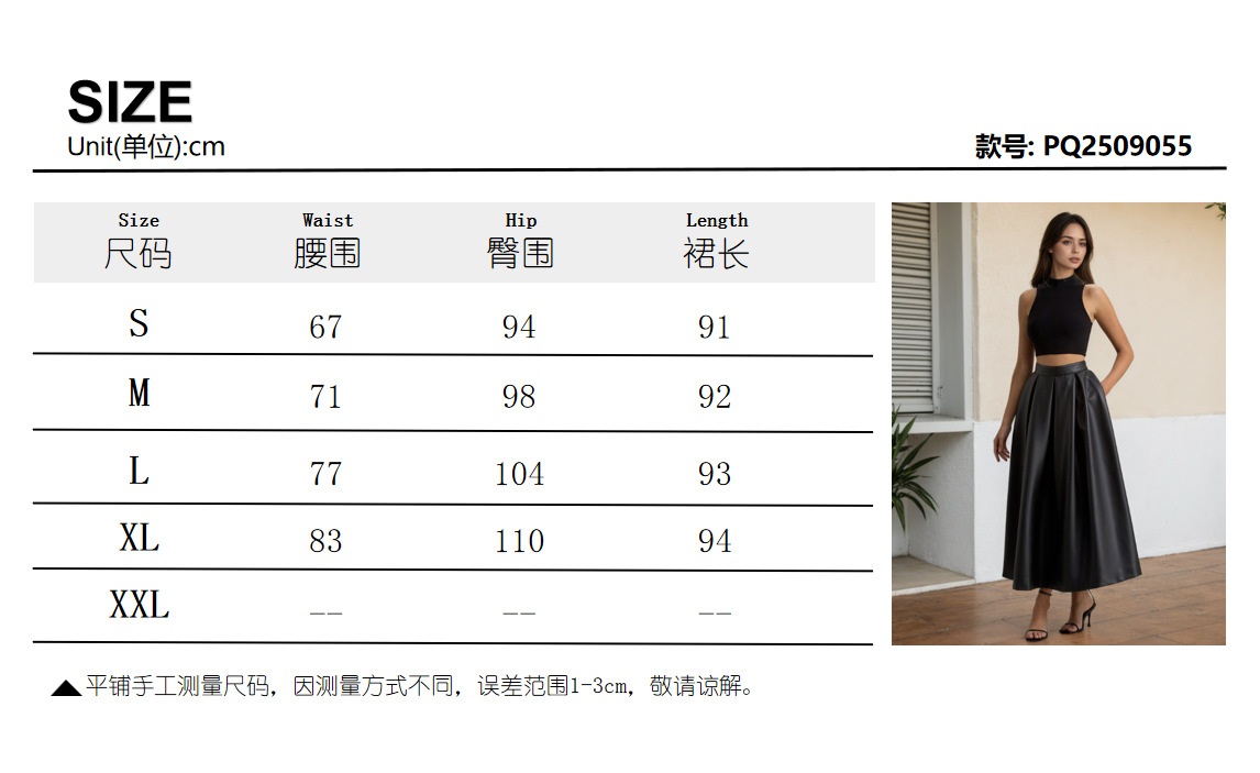 韩系pu皮裙百褶半身裙女2025秋季新款女装显瘦中长款A字伞裙A7539