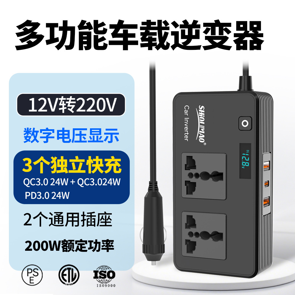 巴西爆款200W排插精选电源转换器多功能带数显快充逆变器车载专用