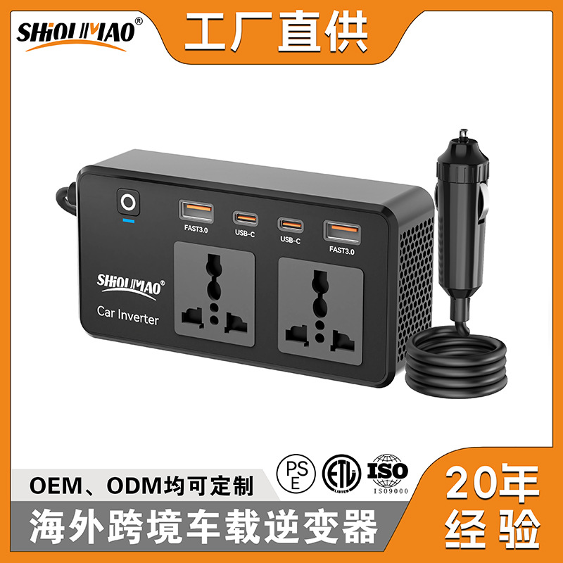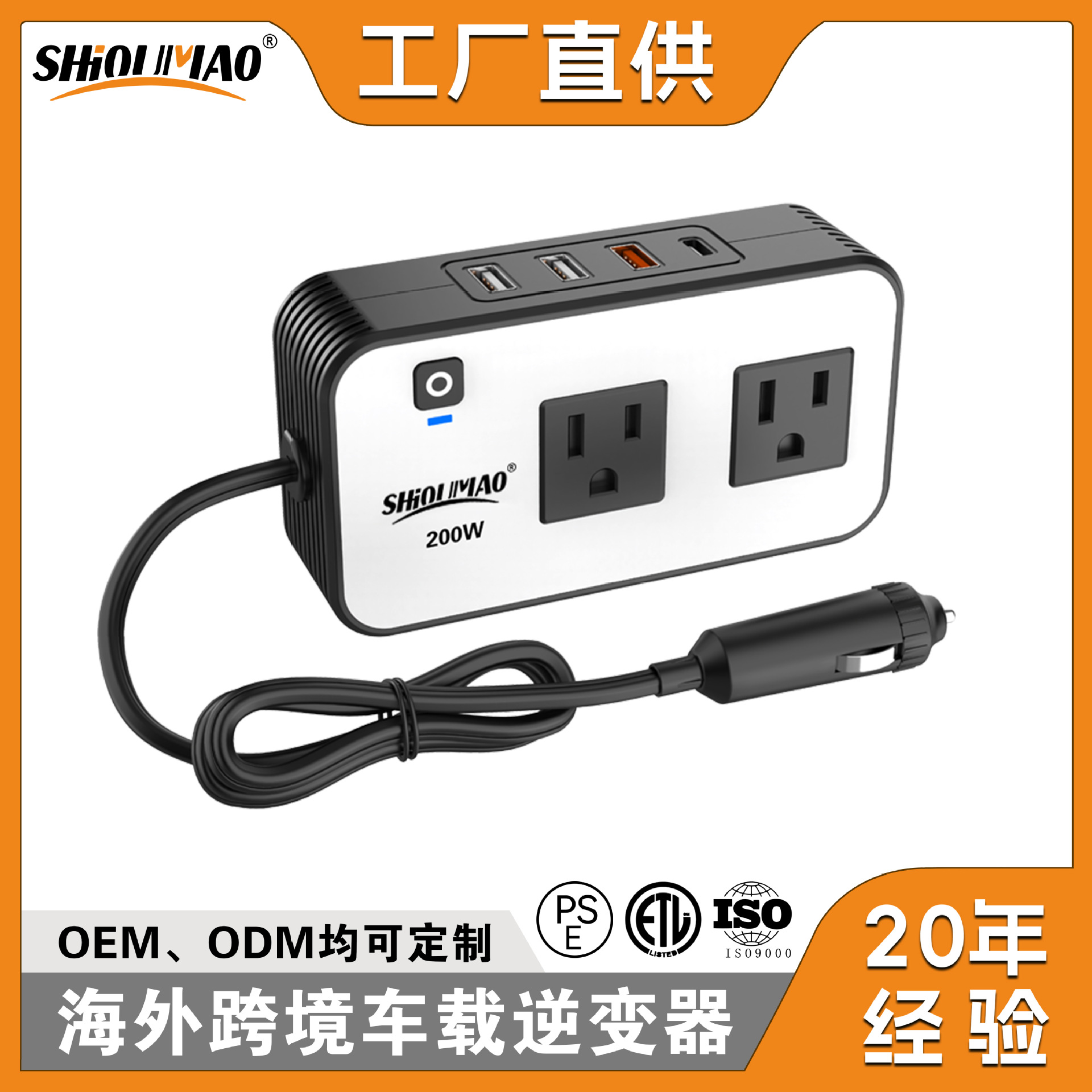 200w外贸排插智能车载逆变器 PD快充USB多功能插座汽车电源转换器