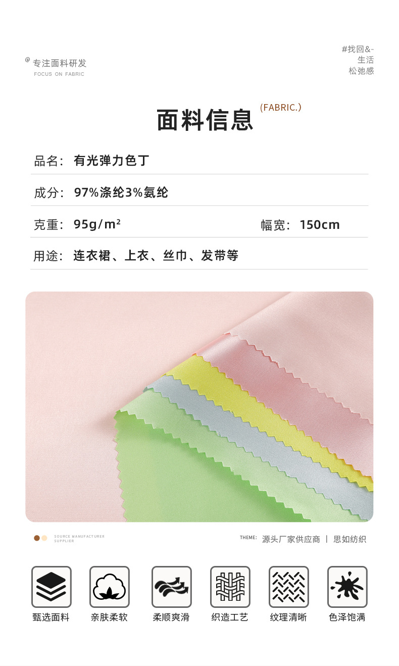 仿真丝有光弹力色丁布50*75D婚纱吊带礼服睡衣面料箱包装饰缎面布