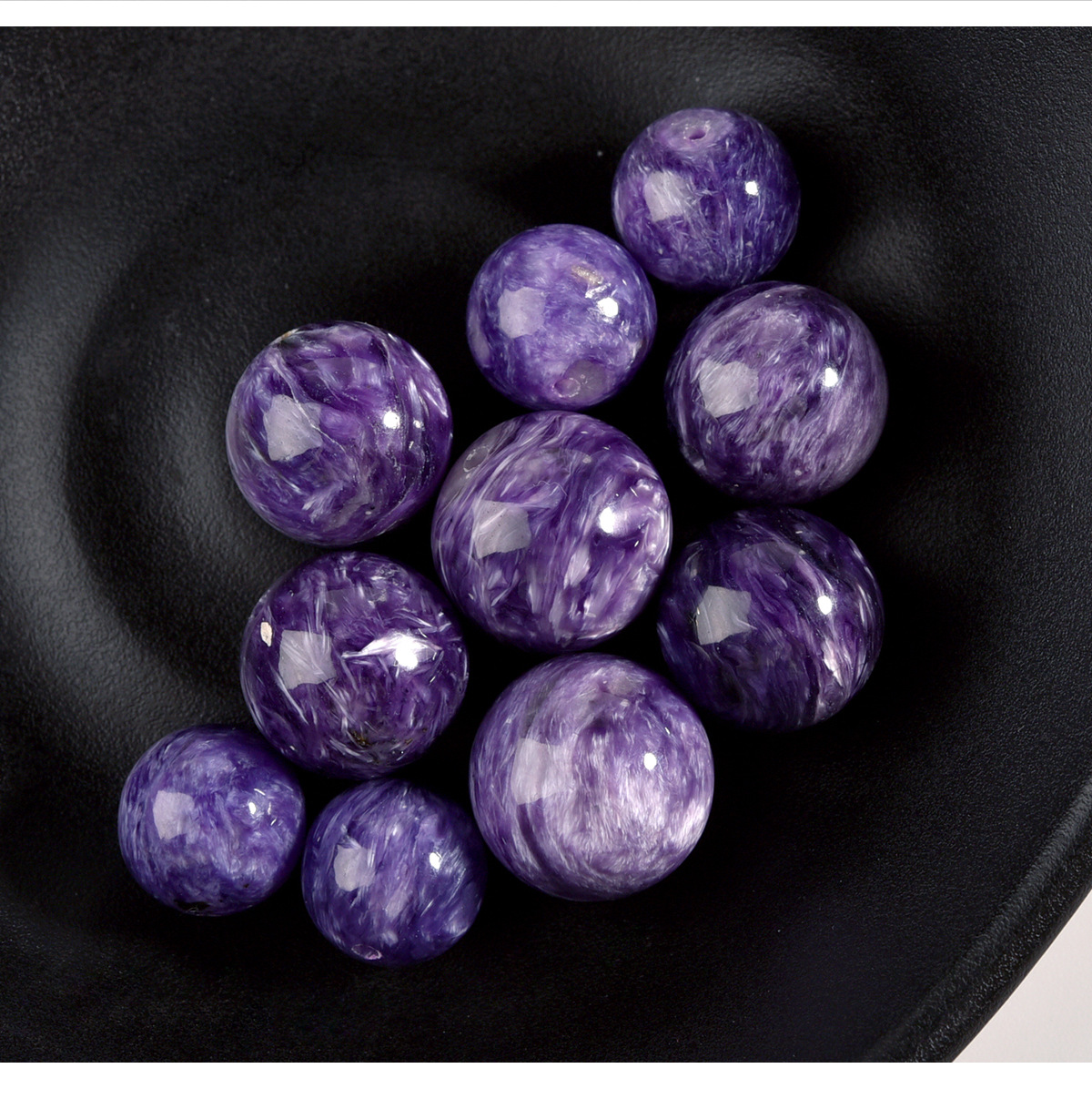7A 天然アメジストチャロライトブレスレットルースビーズ原石 9 紫火ビーズ付き紫水晶 DIY ブレスレットシングルビーズ