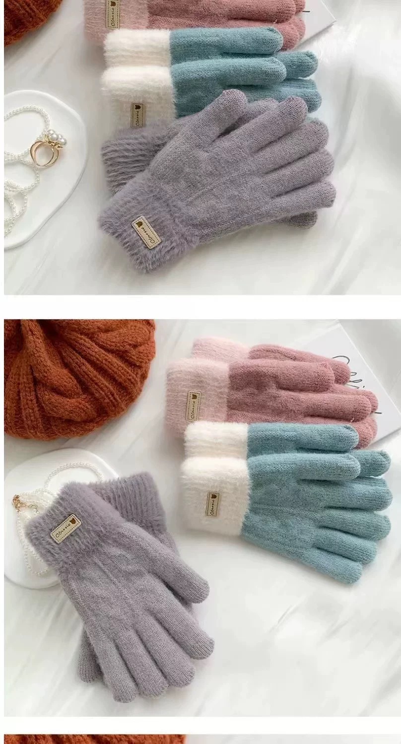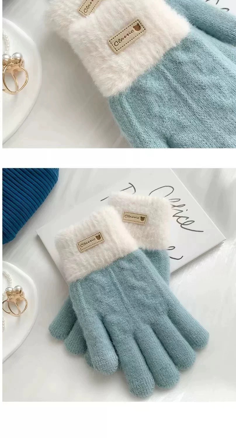 多巴胺拼接冬季保暖手套新款露指触屏女韩版百搭骑行秋冬防寒手套