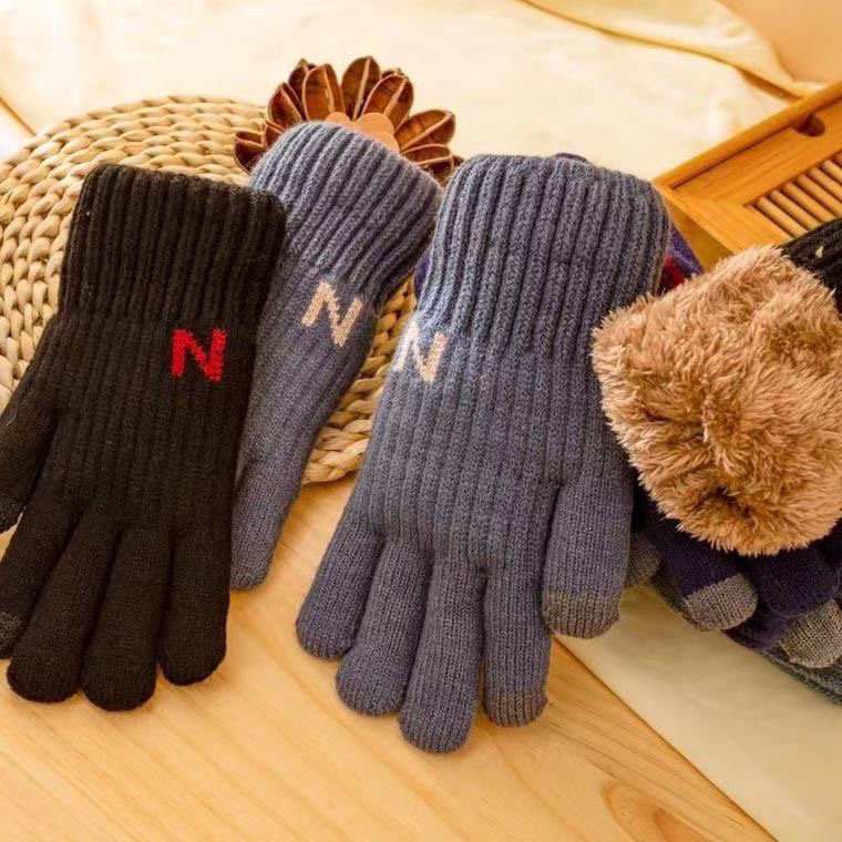 メンズ手袋ベルベット厚手手袋アルファベット刺繍マークN乗用冬防寒保温手袋タッチパネルメーカー