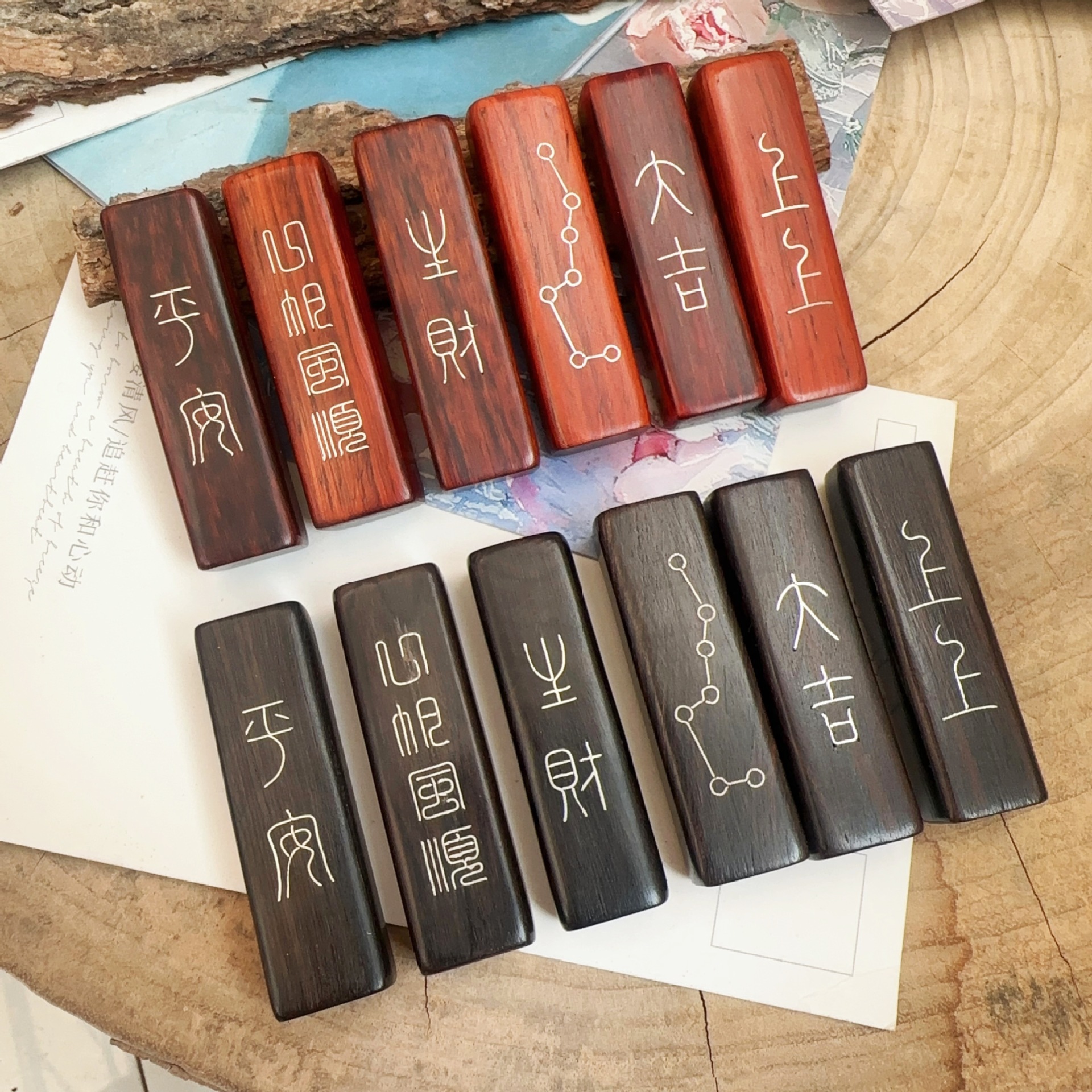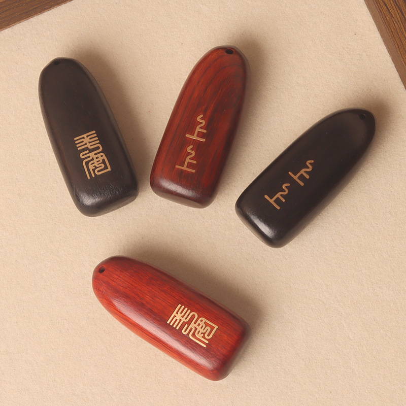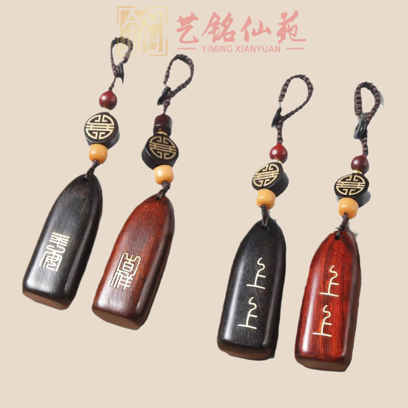 紫檀木雕刻字上签配饰钥匙扣汽车挂件黑檀镶嵌木质无事牌饰品