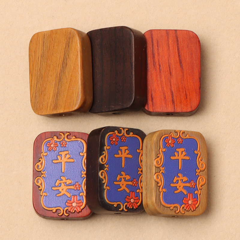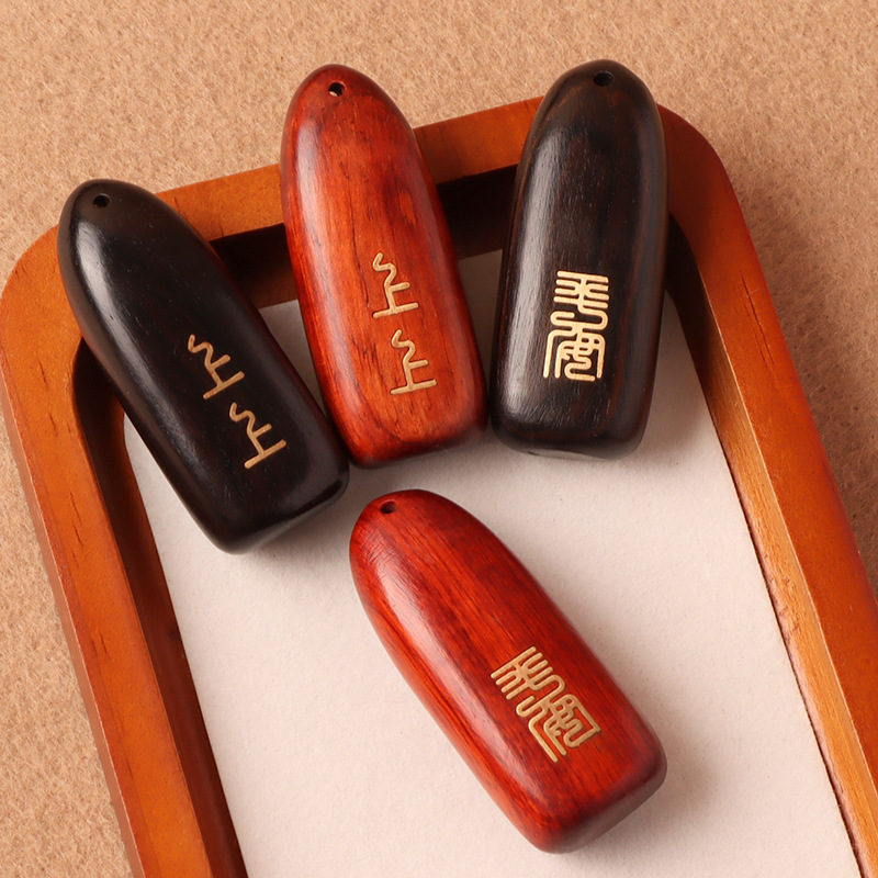 紫檀木平安吉祥無事ブランド両面象眼真鍮DIY部品アクセサリーペンダント