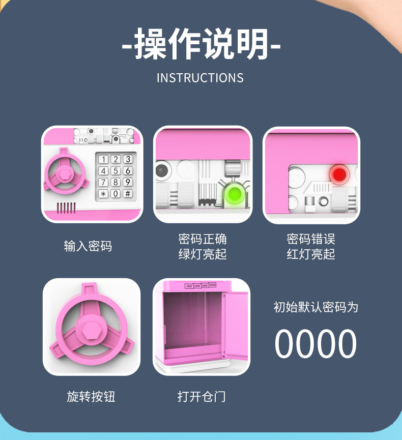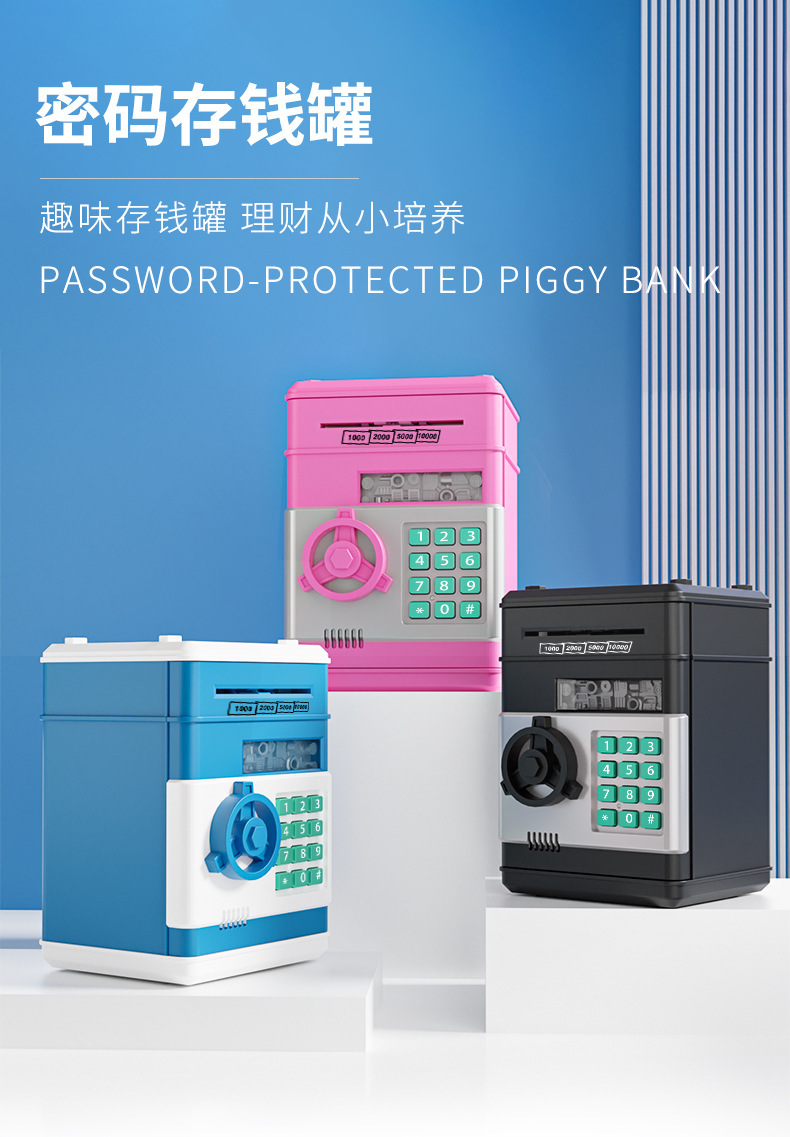颜色 全自动密码锁【存钱罐】黑色,全自动密码锁【存钱罐】粉色,全自动密码锁【存钱罐】蓝色