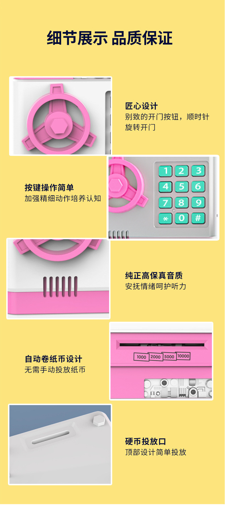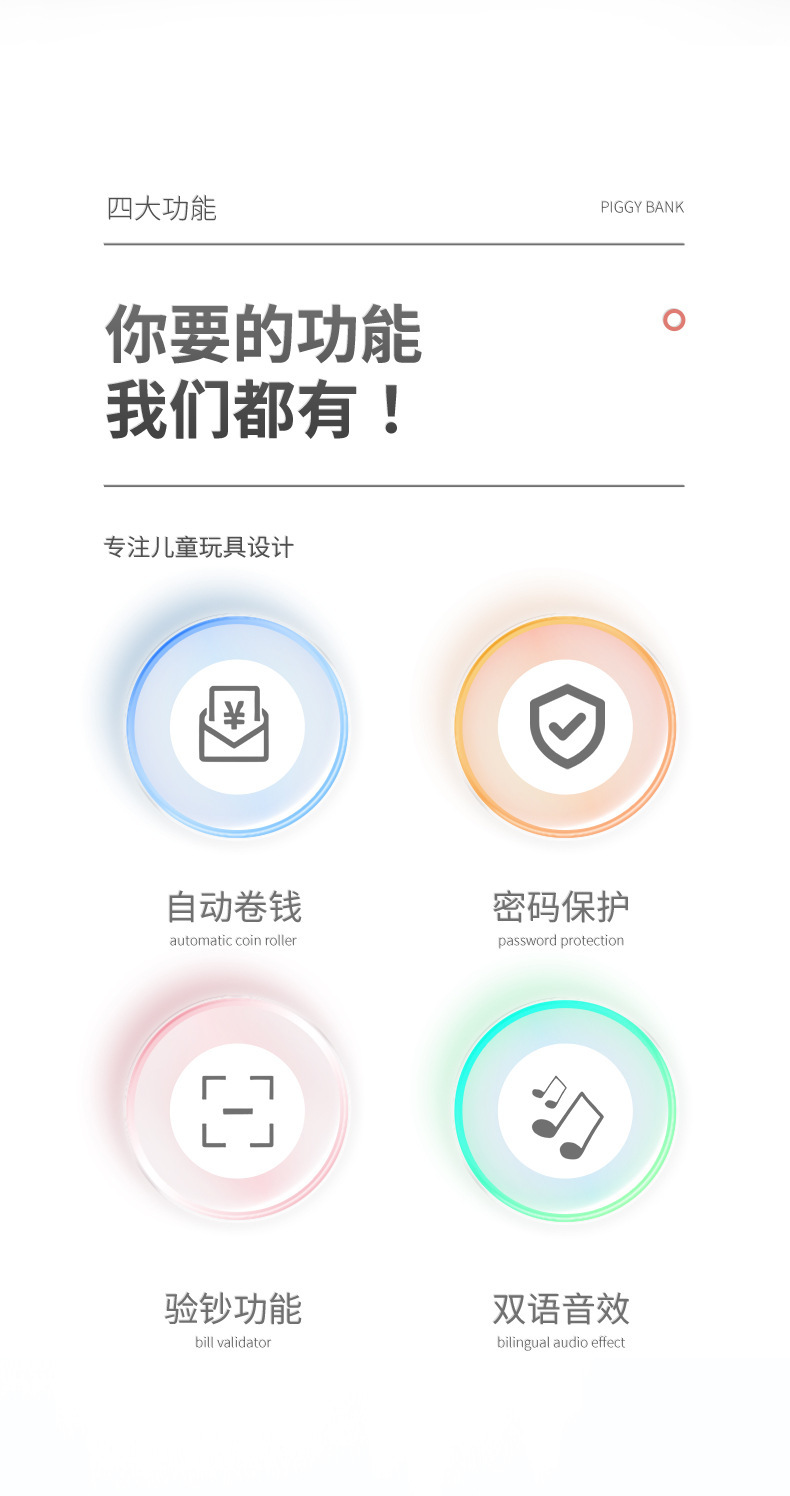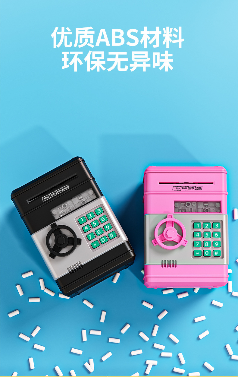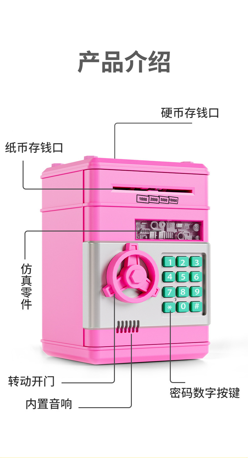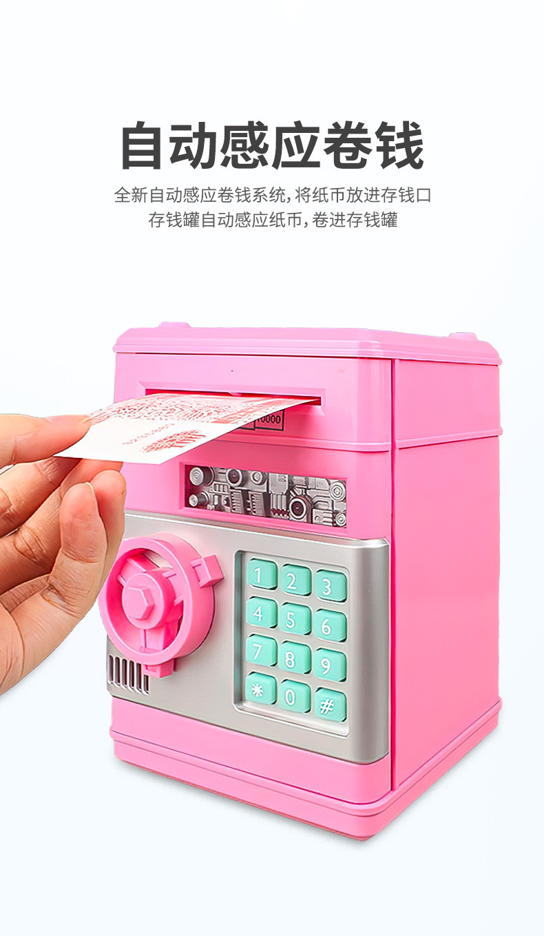 跨境儿童存钱罐超实用可自动开门大容量防摔智能密码儿童保险箱