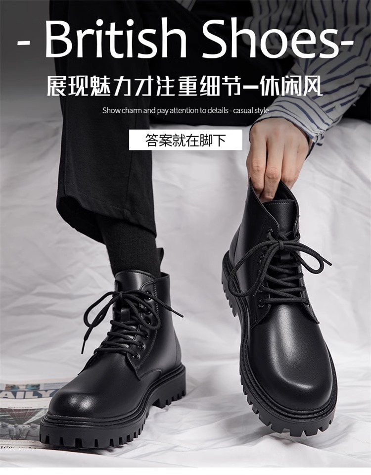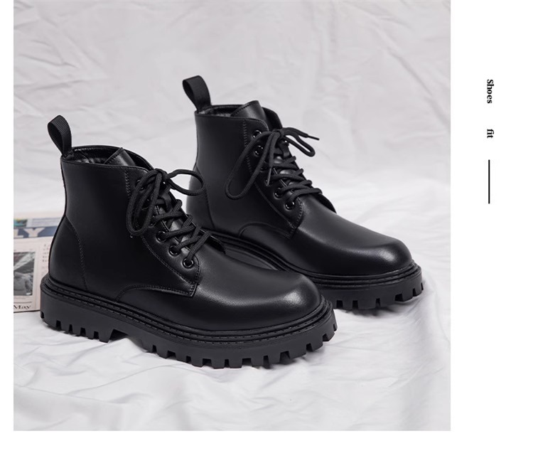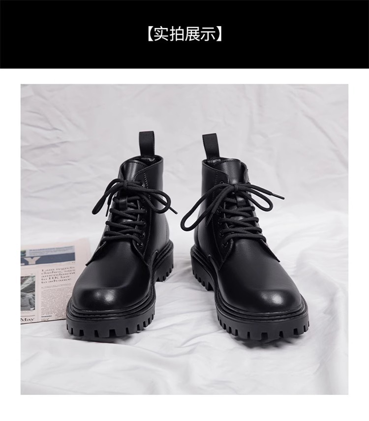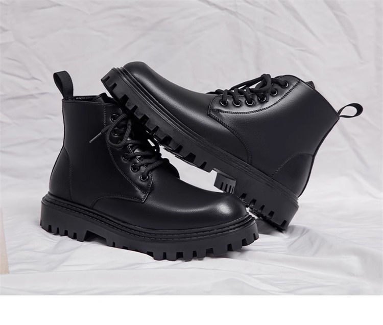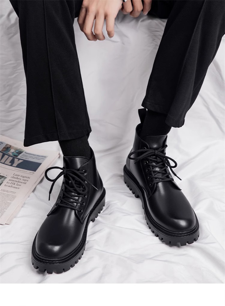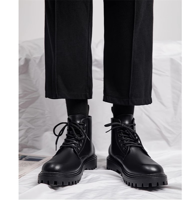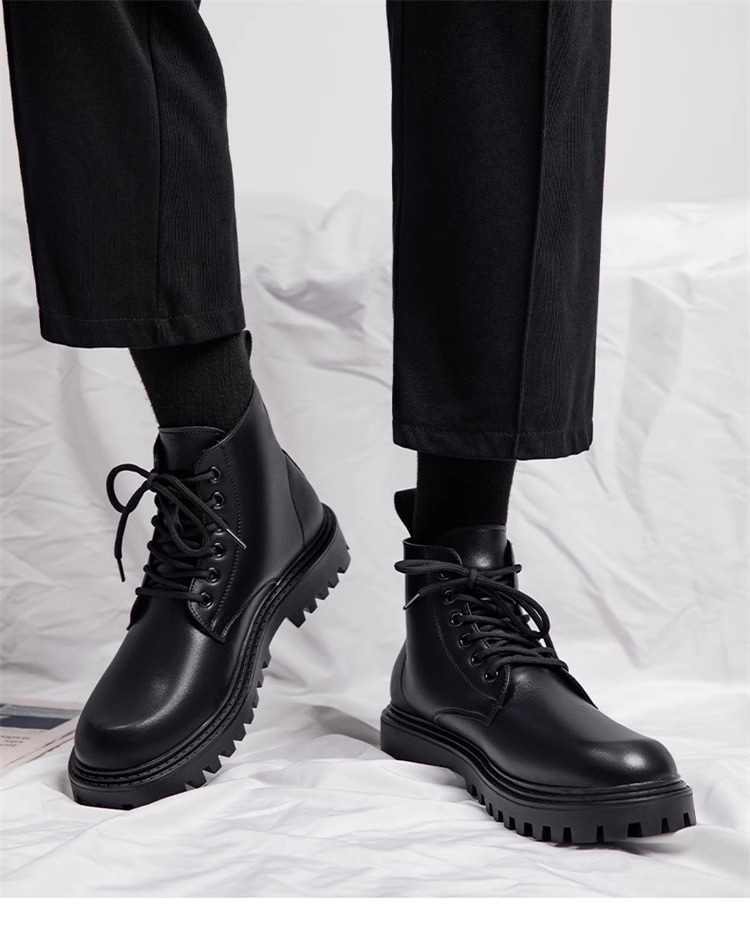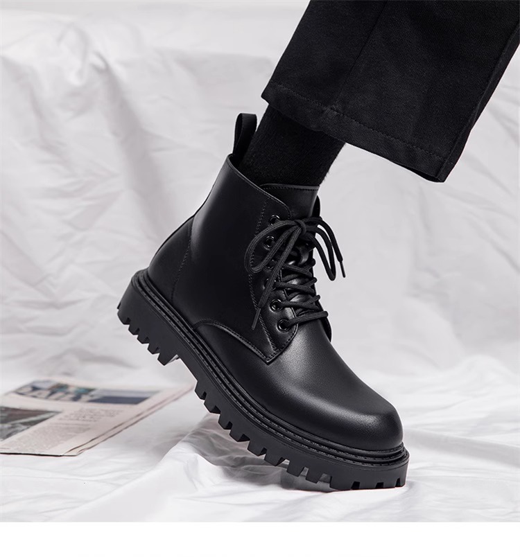 2025 秋の新メンズレザーブーツ秋の新英国スタイルマーティンブーツメンズブーツレザー無地黒