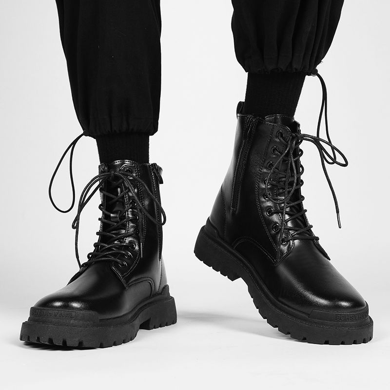 マーティンブーツ男性側ファスナー金秋冬ファッションファッション男性屋外中組ショートブーツ厚い底工装靴高組革靴