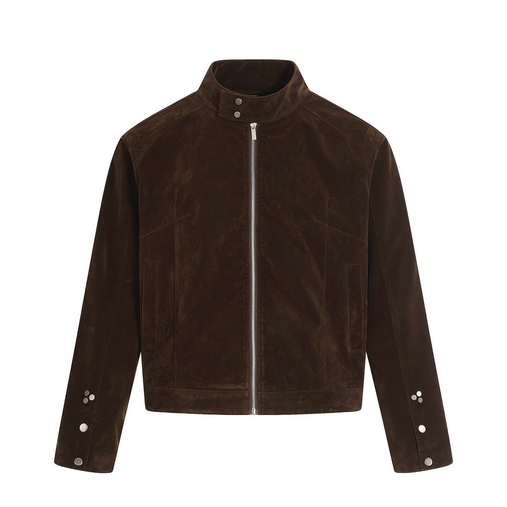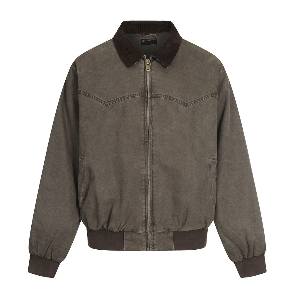 美式复古宽松夹克工装服秋冬男款纯色休闲设计感立领外套街潮