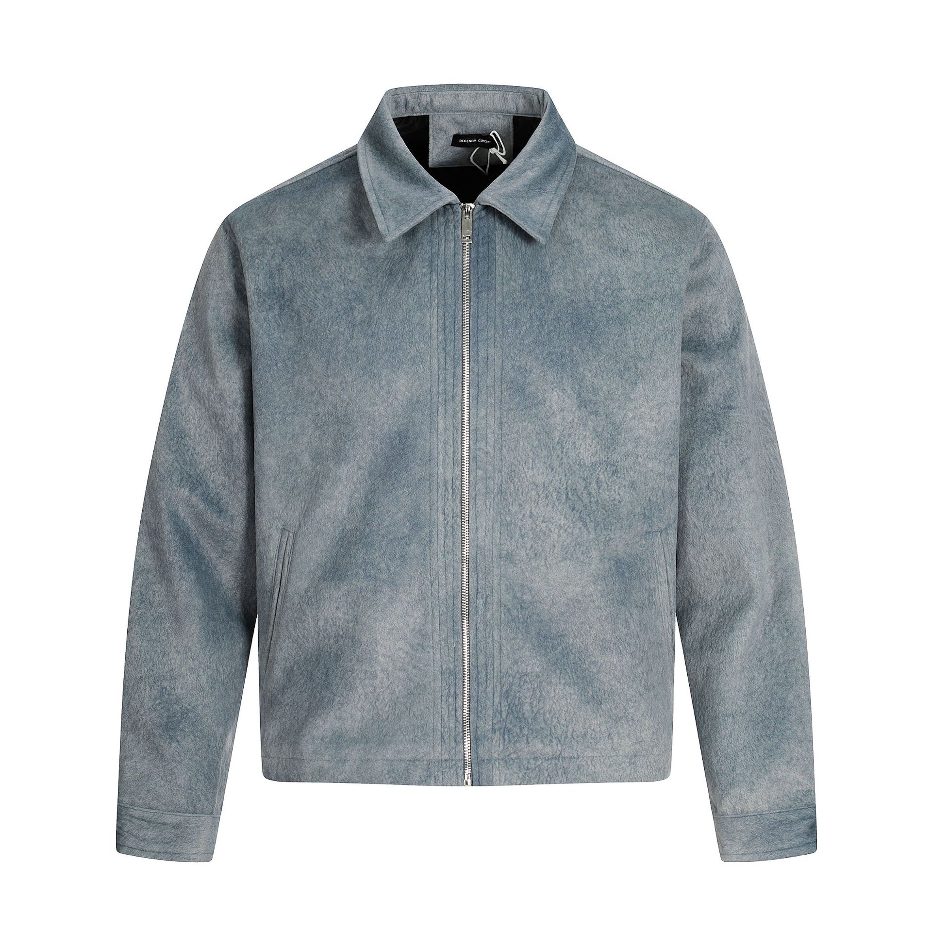 水洗做旧夹克男士高街朋克春秋季宽松休闲撞色翻领工装外套设计感