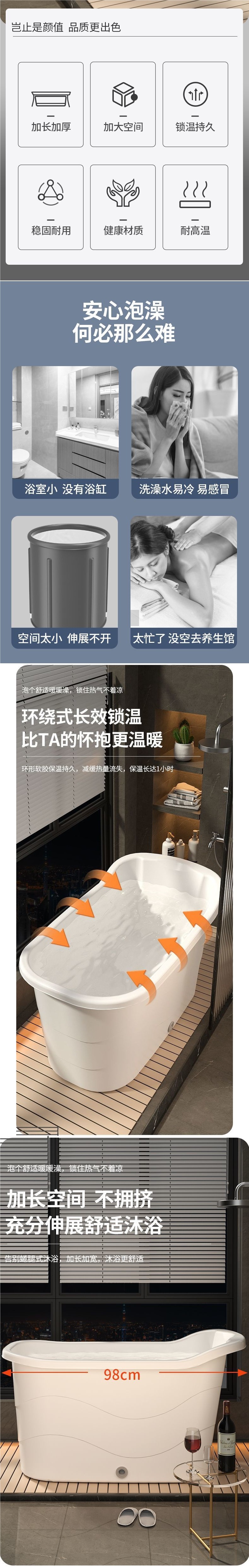 成人浴桶大人泡澡桶沐浴加厚全身可坐大号家用带盖浴缸塑料浴盆