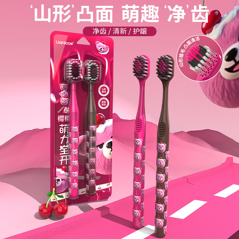 Uanicce 【チェリーベアマウンテン型凸型歯ブラシ】ワイドヘッド 大人用 歯ぐき保護 柔らかい毛先 妊婦さんも使える