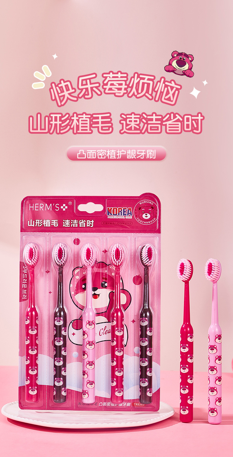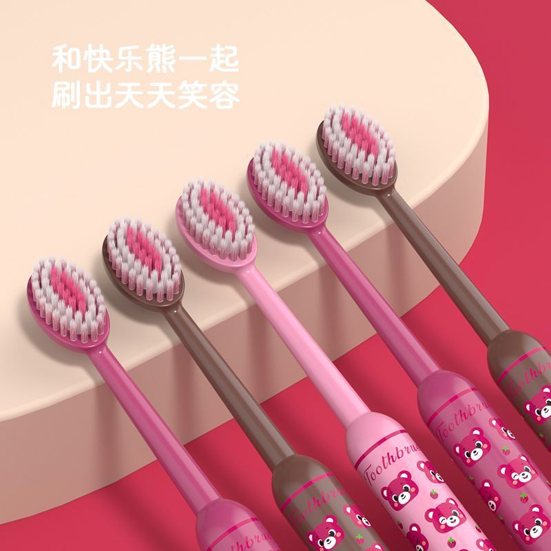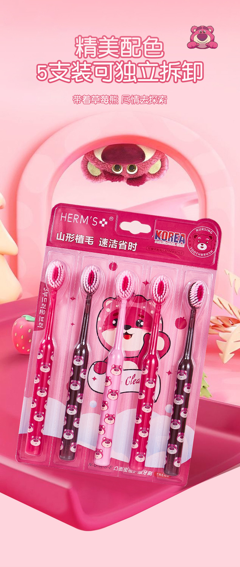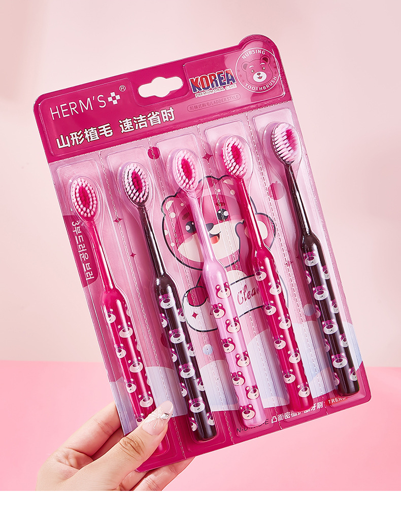 HERM'S【五支装】高档轻奢草莓熊可爱情侣软毛牙刷成人家用男女士