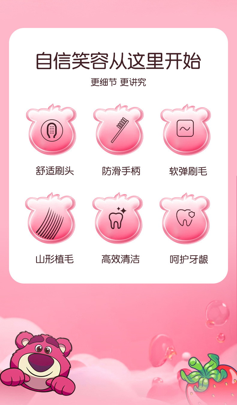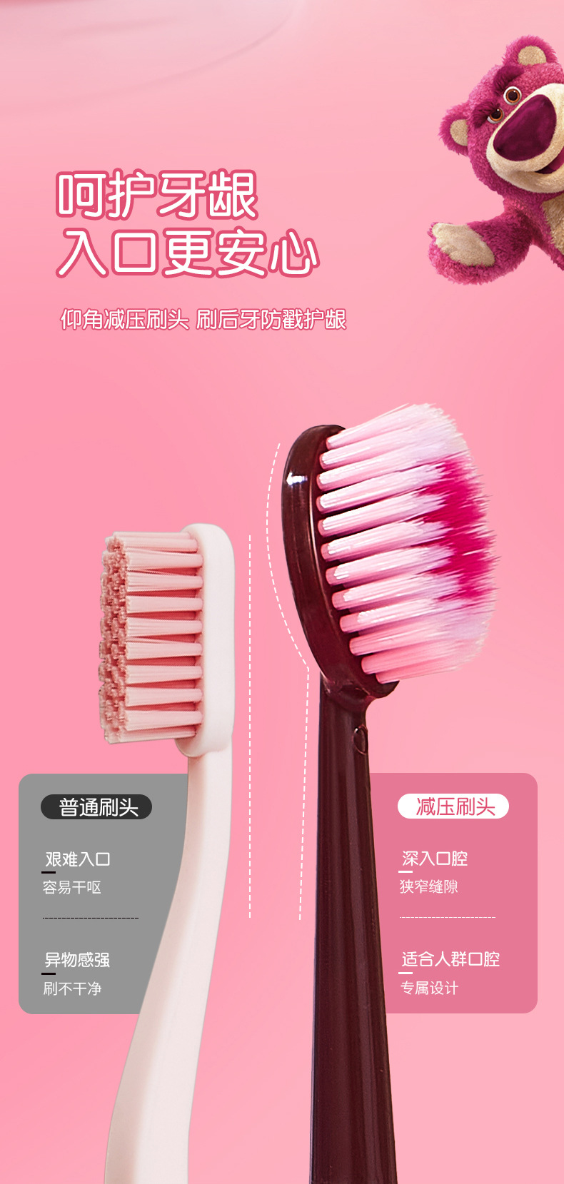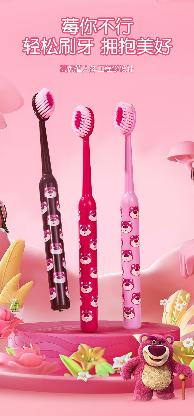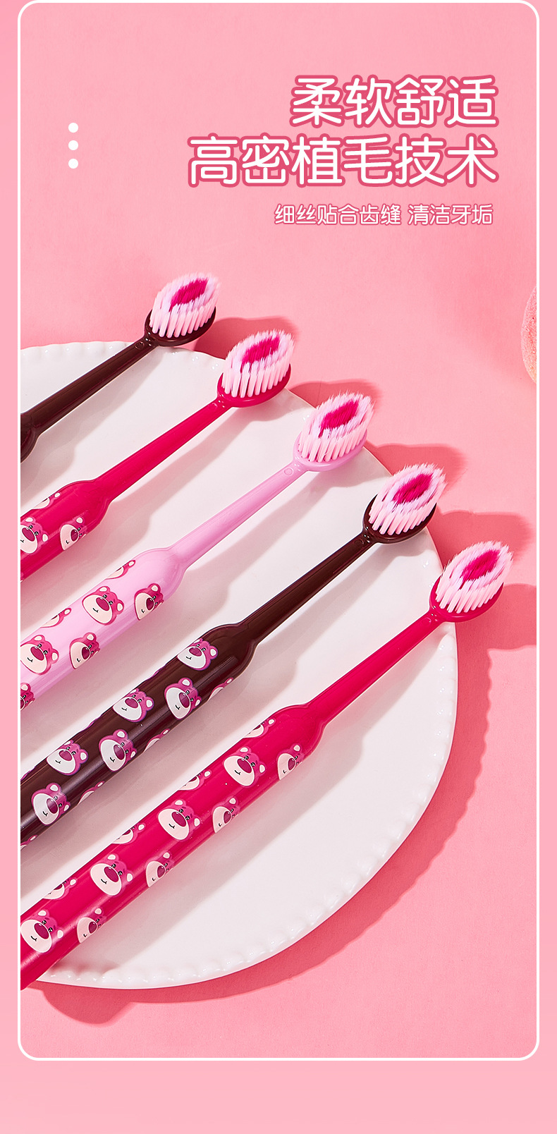 HERM'S【五支装】高档轻奢草莓熊可爱情侣软毛牙刷成人家用男女士