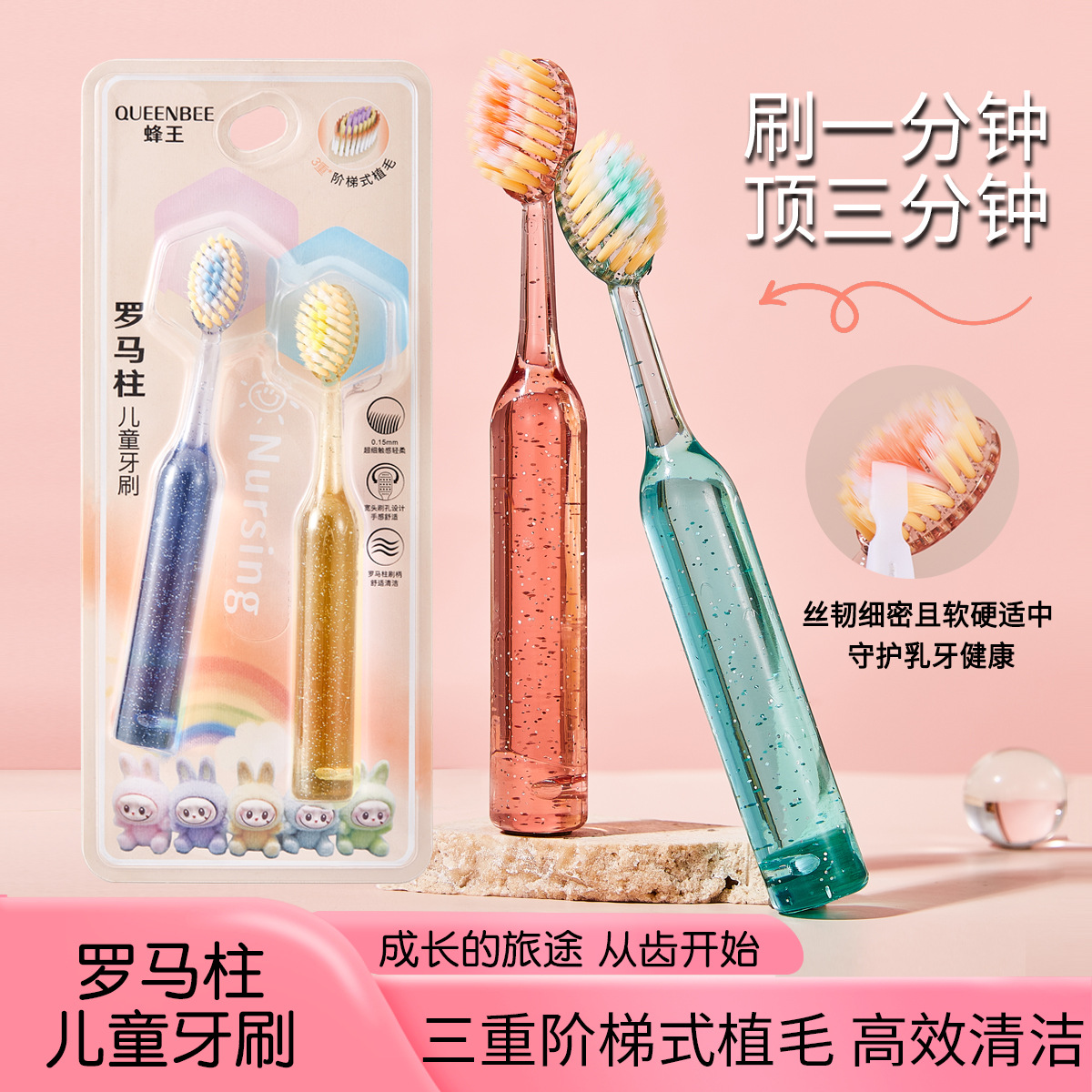 爆款水晶儿童牙刷3-12岁高级软毛巨无霸可爱罗马柱透明牙刷工厂批