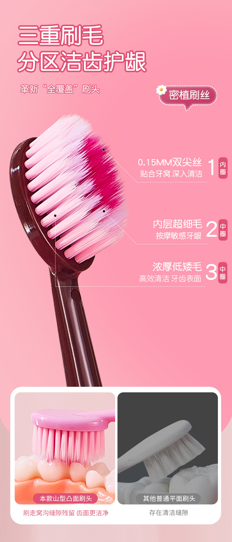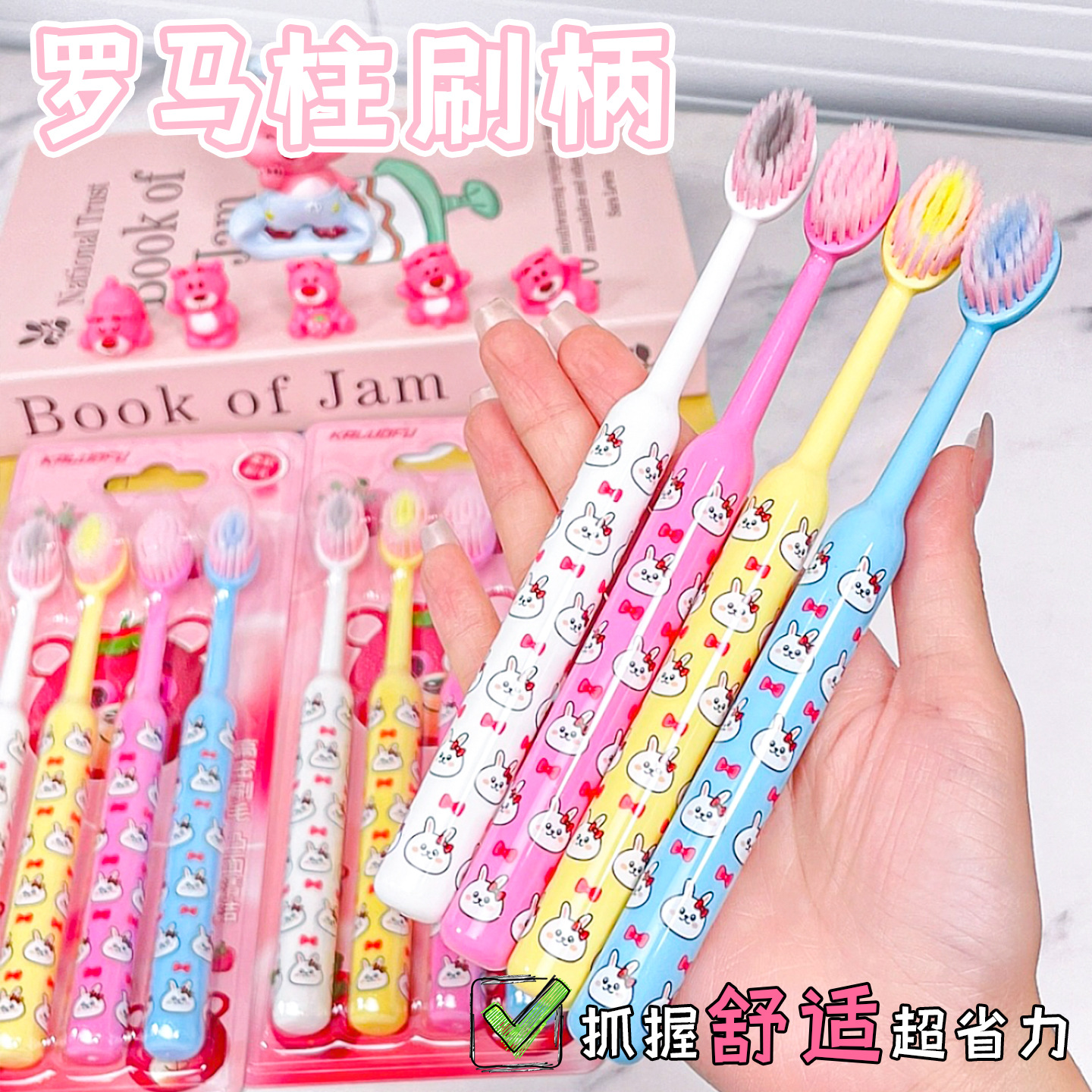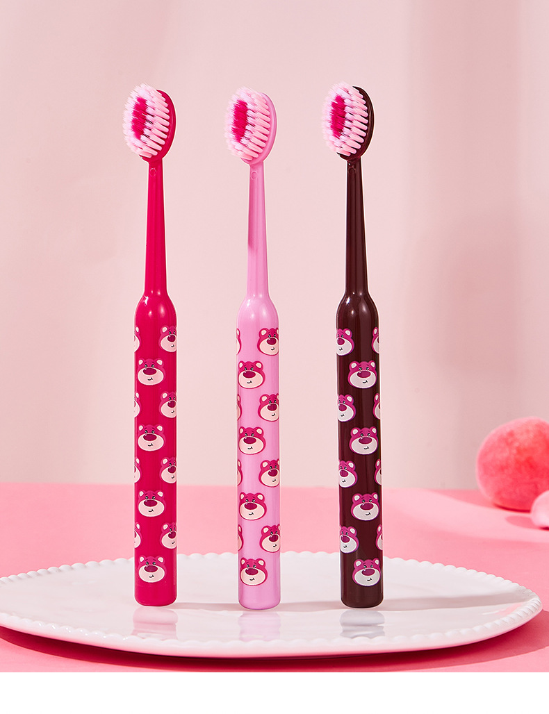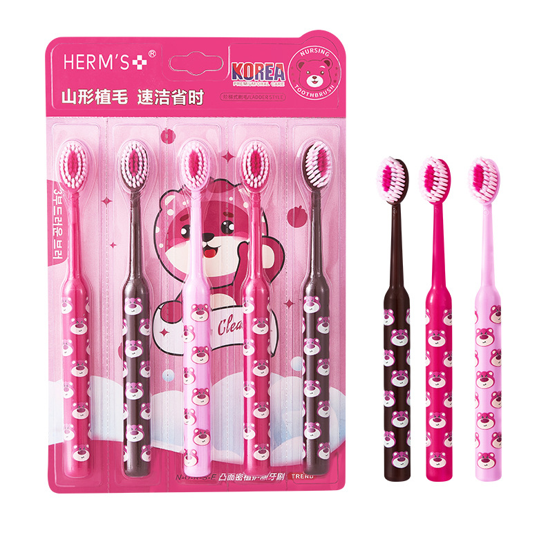 三支装罗马柱樱桃熊山型成人凸面细软毛牙刷护龈家用小头批发