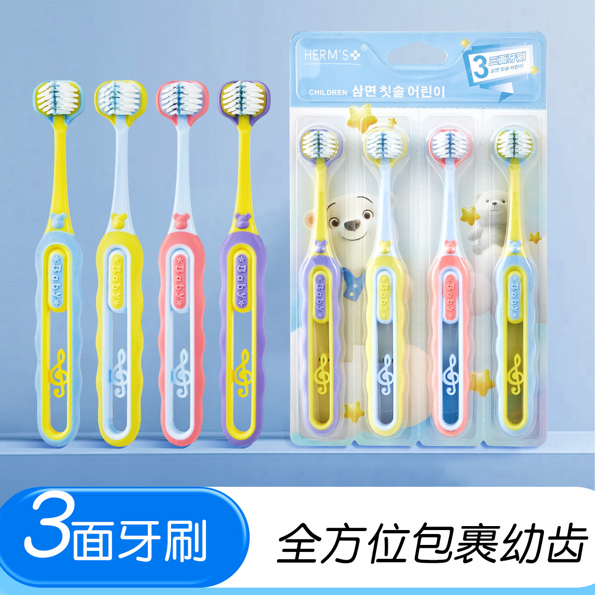 ホミングスHERMS韓国子供三面歯ブラシ3-12歳赤ちゃん子供立体包みソフト毛歯ブラシ
