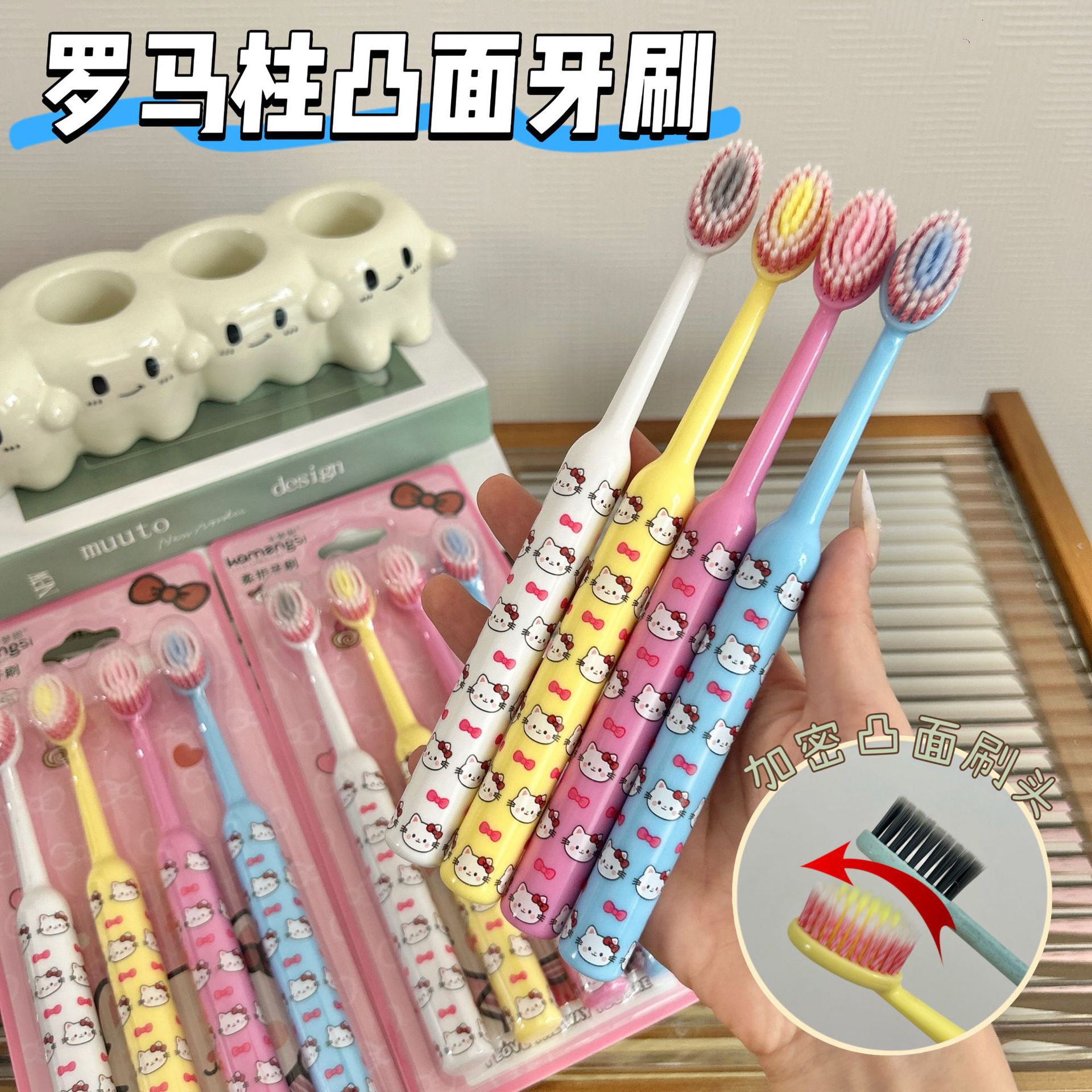 抖音同款新款KT猫罗马柱山形凸面软毛牙刷成人家用牙刷印花手柄