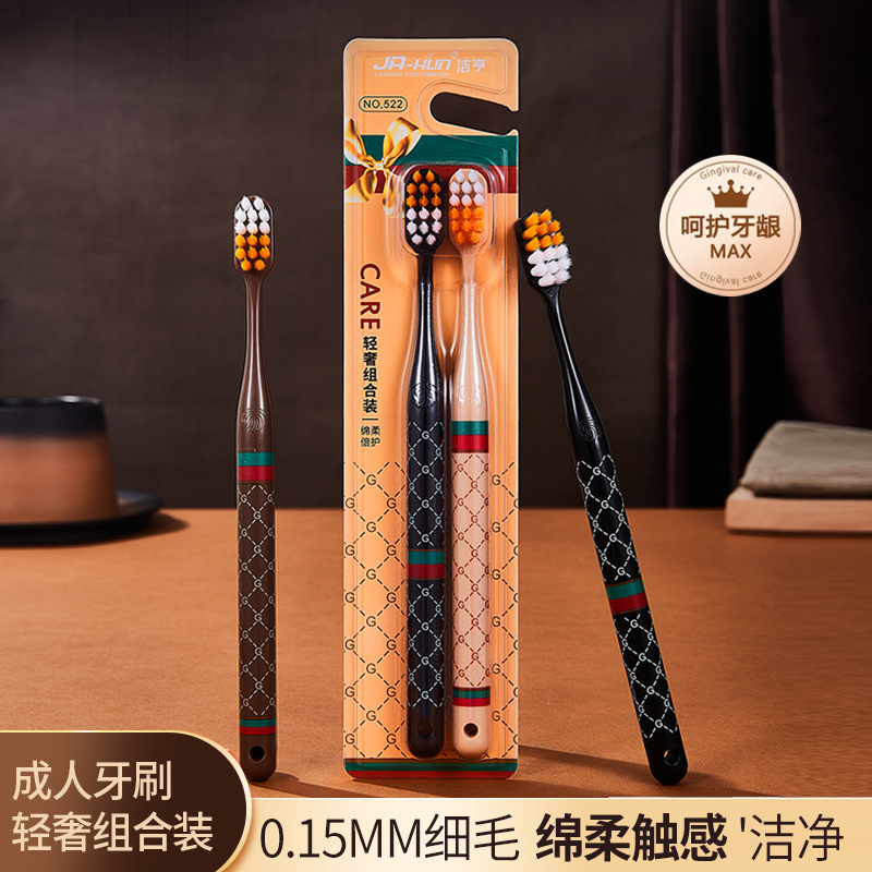 【2本入】爆品軽豪華歯ブラシ家庭用超軟毛成人ワイドヘッド携帯プリントハンドルクロスボーダー歯ブラシ