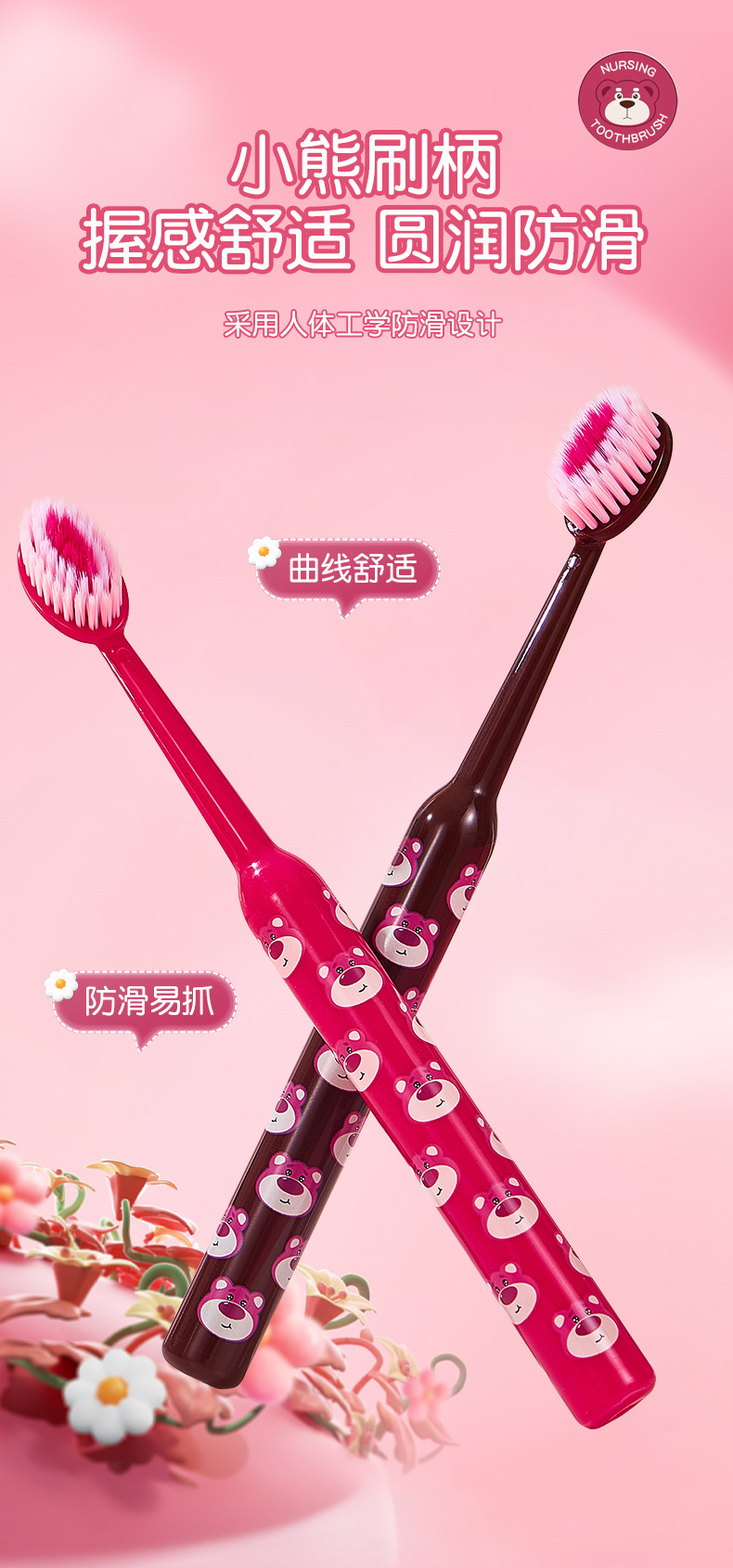 【螺旋毛】新款罗马柱樱桃熊山型成人凸面细软毛牙刷护龈家用小头