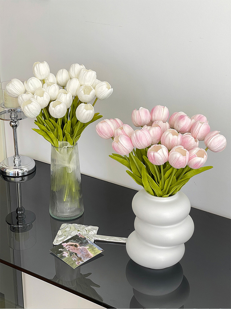 造花チューリップ模造花高级感手作りホームリビング饰りブーケ置物工芸品撮影道具