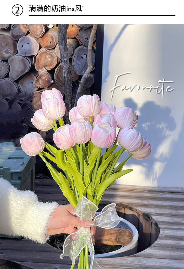 Insチューリップシミュレーション花装飾高級リビングテーブル造花高級保湿手触り花束撮影道具