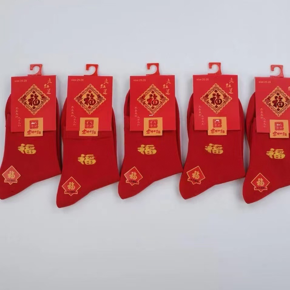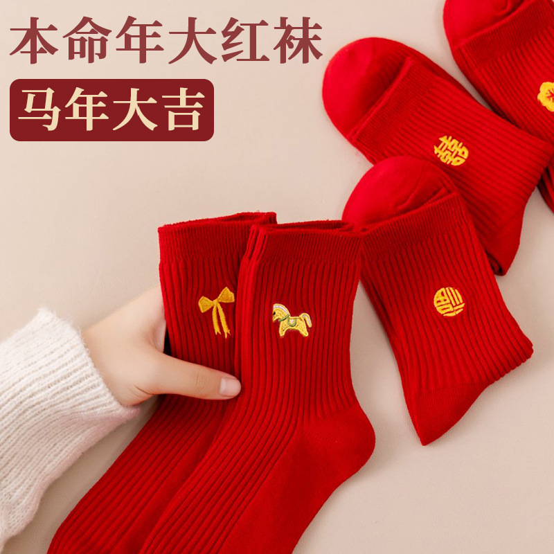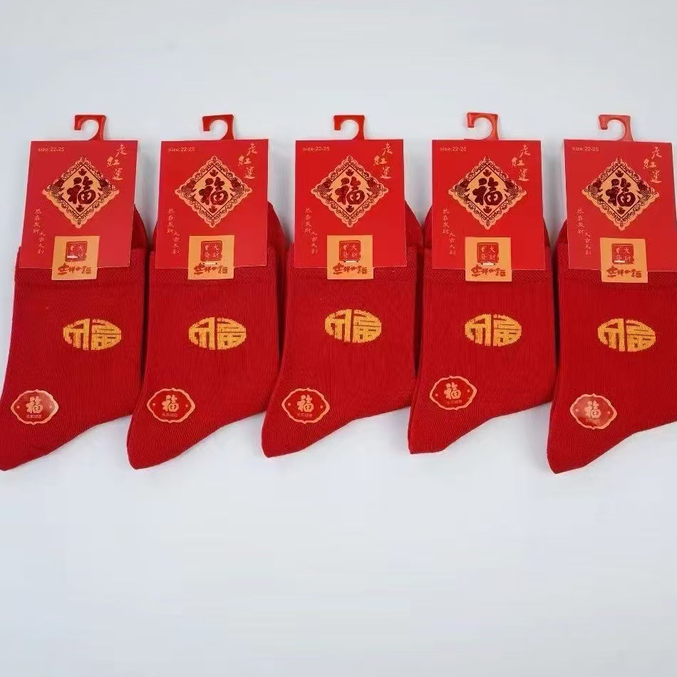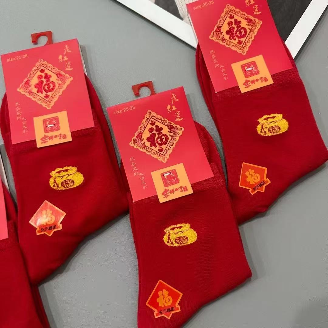 金叶竹本命年大红棉袜福字喜庆棉袜中筒新年结婚一体机对目袜子