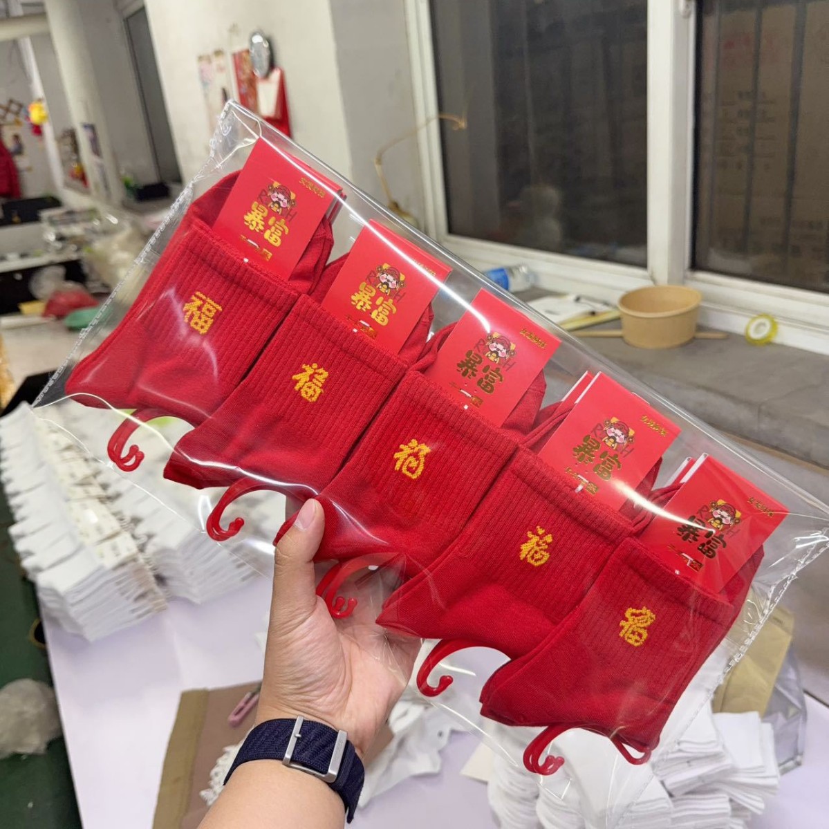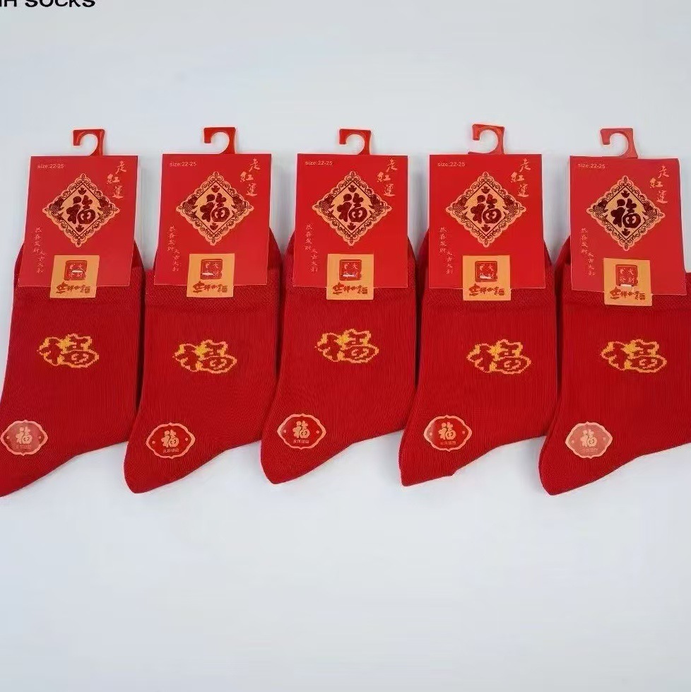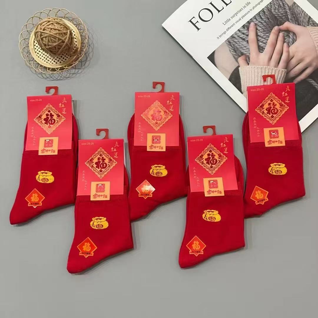 金叶竹本命年大红棉袜福字喜庆棉袜中筒新年结婚一体机对目袜子
