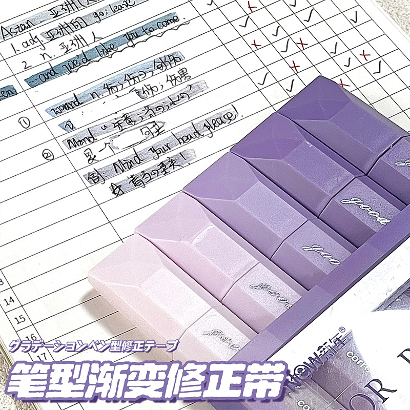 グラデーション色ペン式修正テープ付き学生専用塗り替えテープ付き女の子高颜値ペン型修正テープ中学生専用