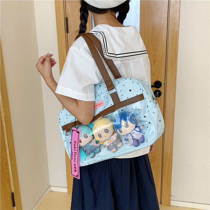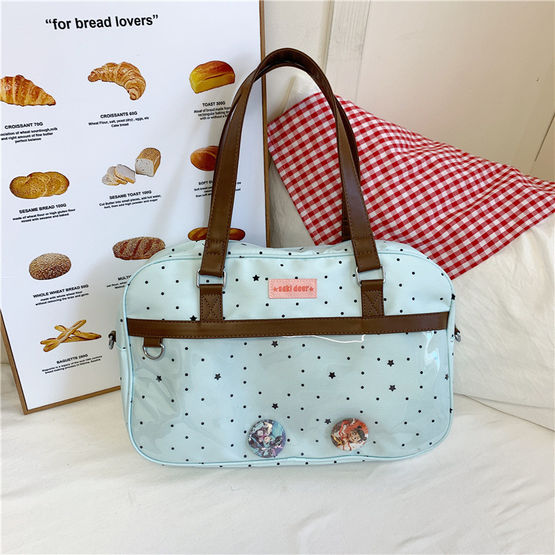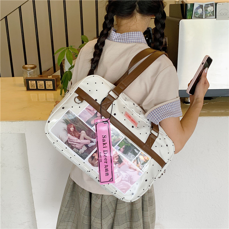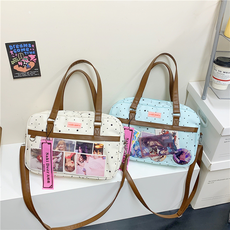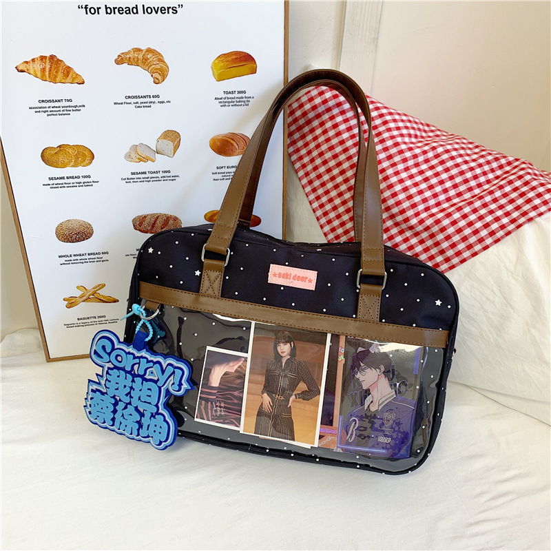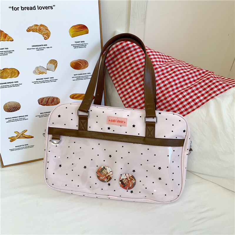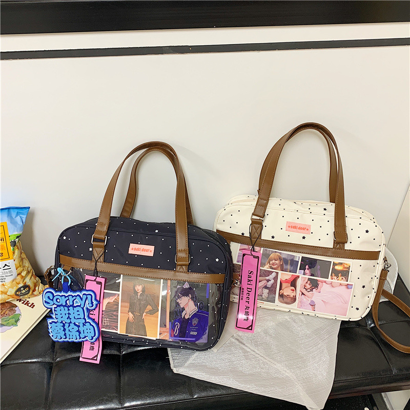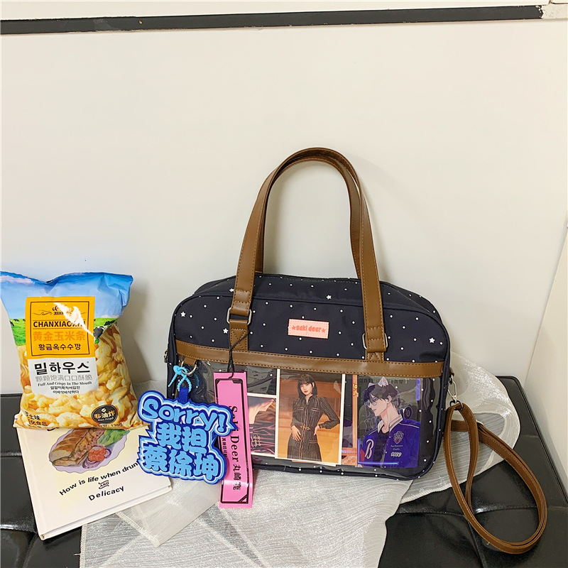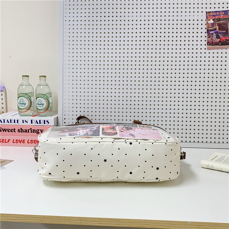 薄巧星痛包可爱波点星星日系痛包单肩包上课包通用帆布包双层透明