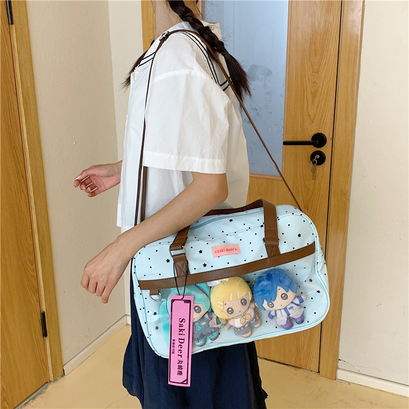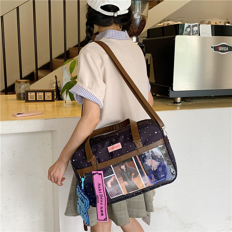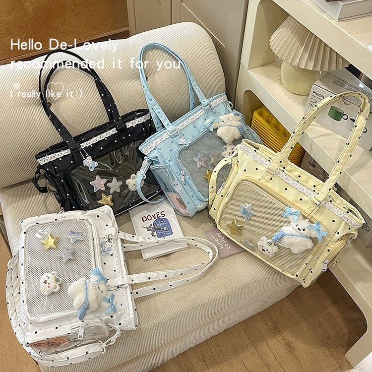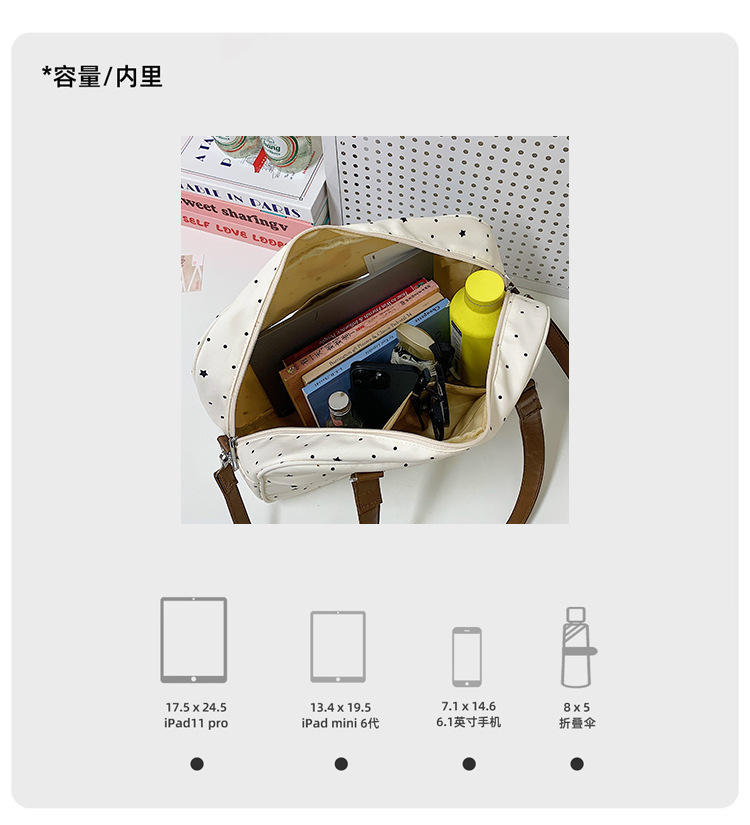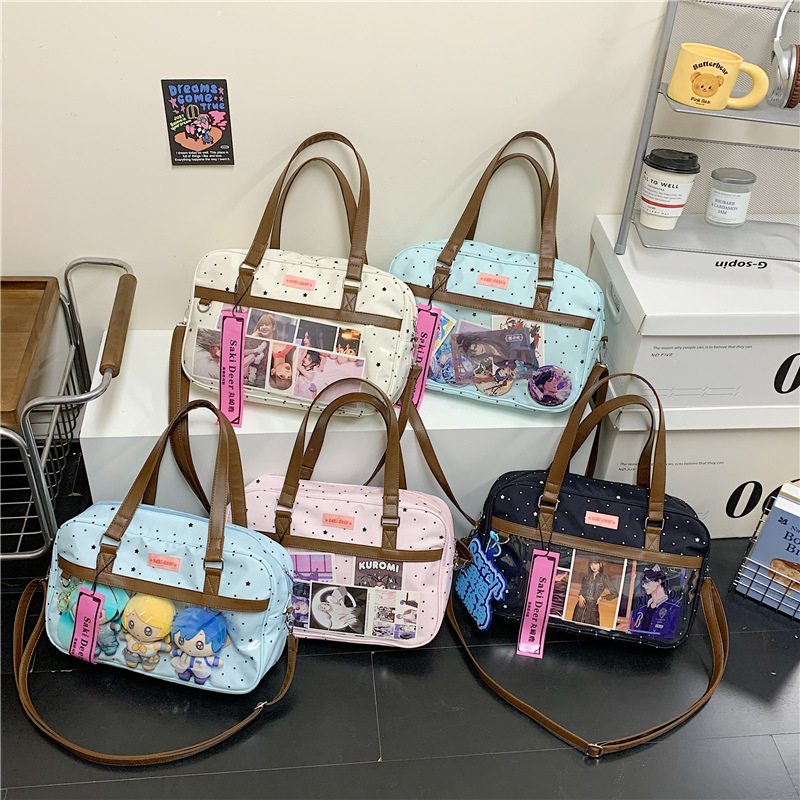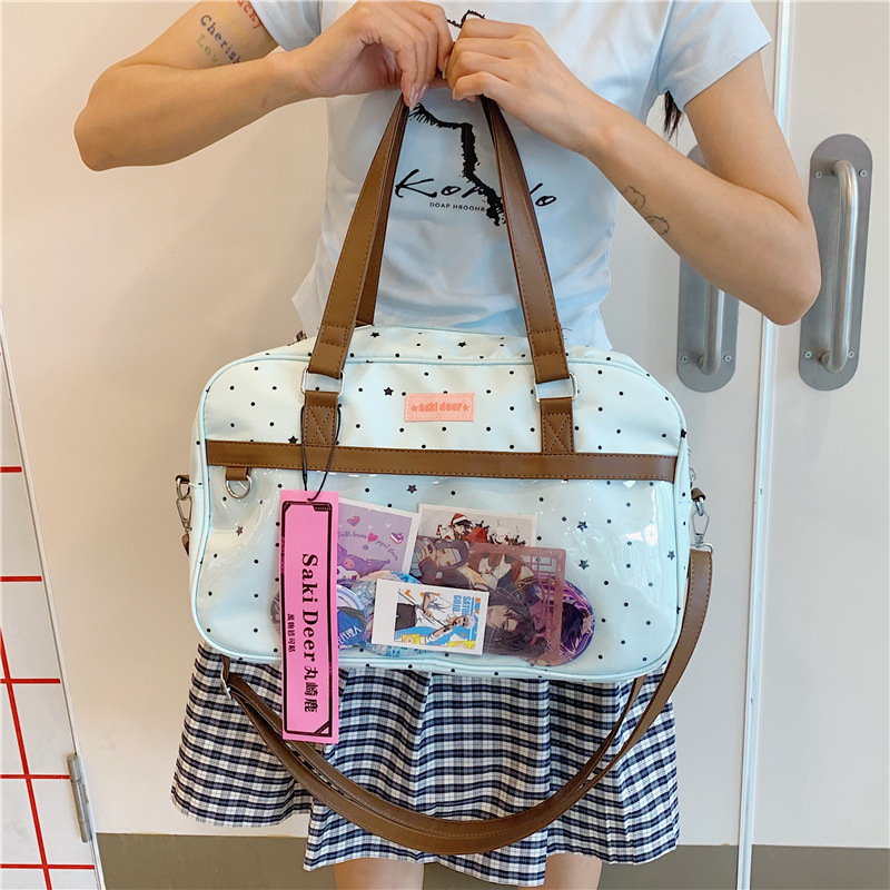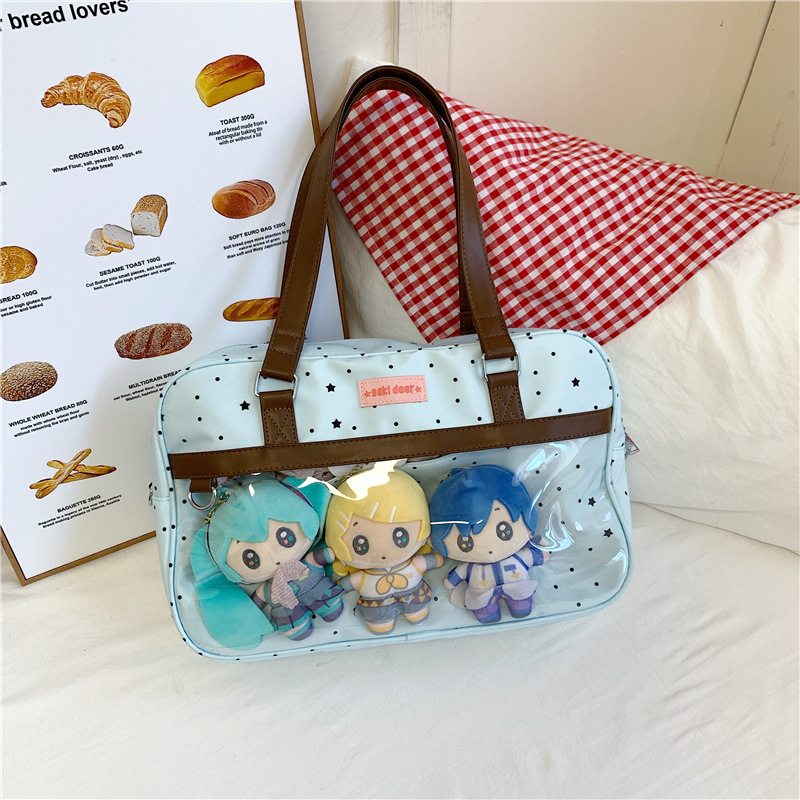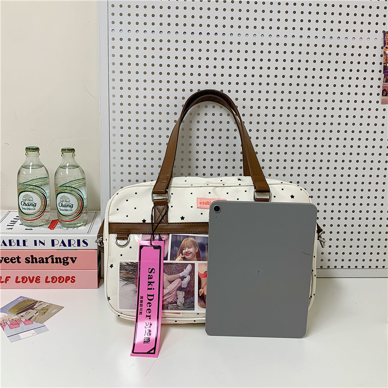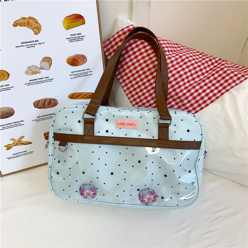 薄巧星痛包可爱波点星星日系痛包单肩包上课包通用帆布包双层透明