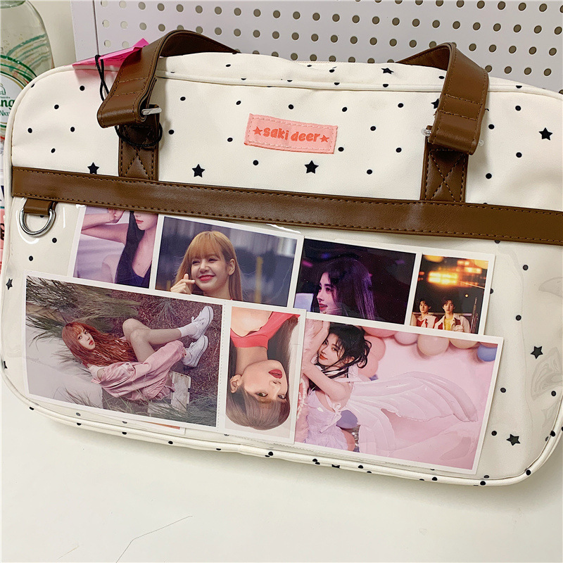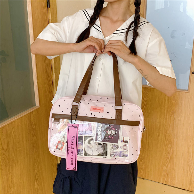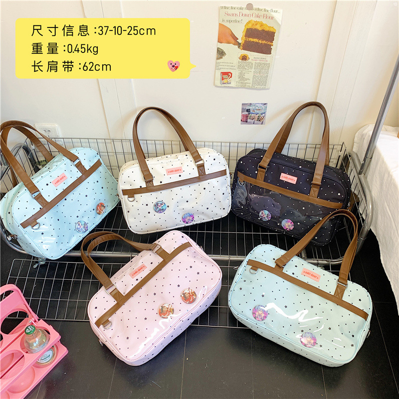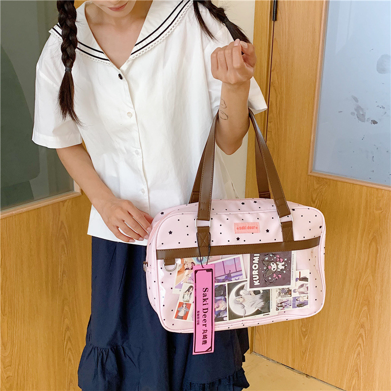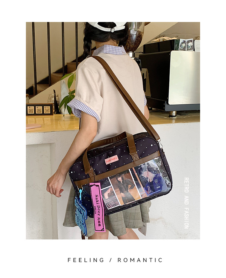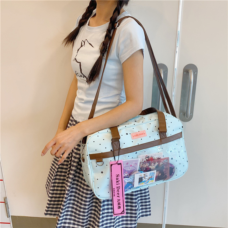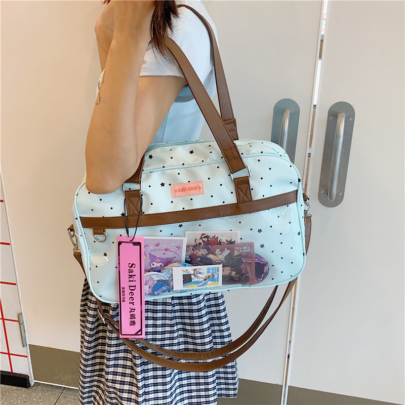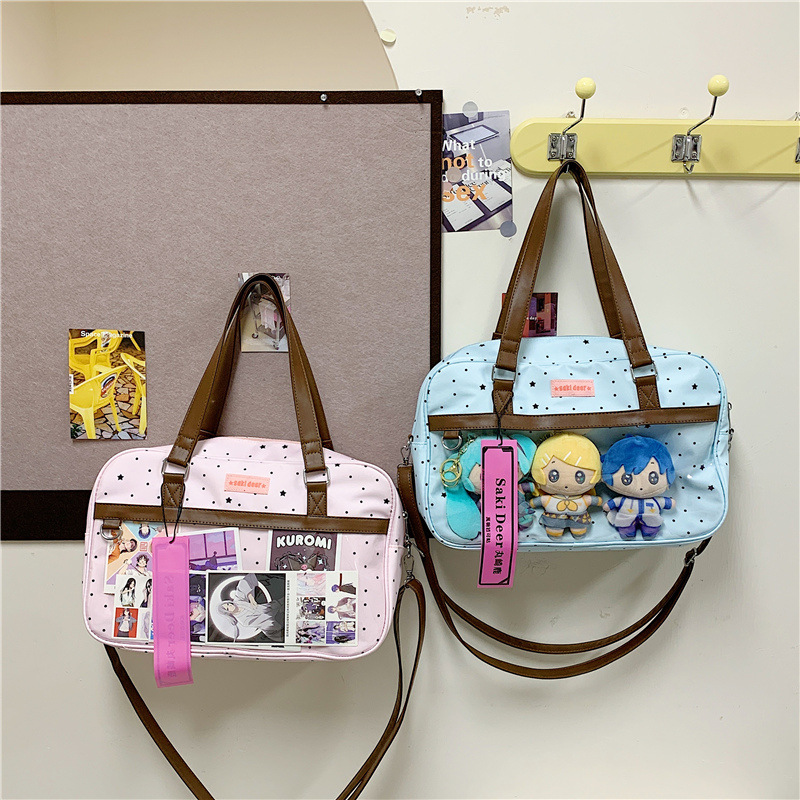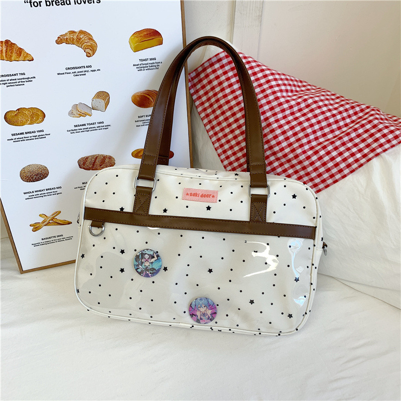 薄巧星痛包可爱波点星星日系痛包单肩包上课包通用帆布包双层透明