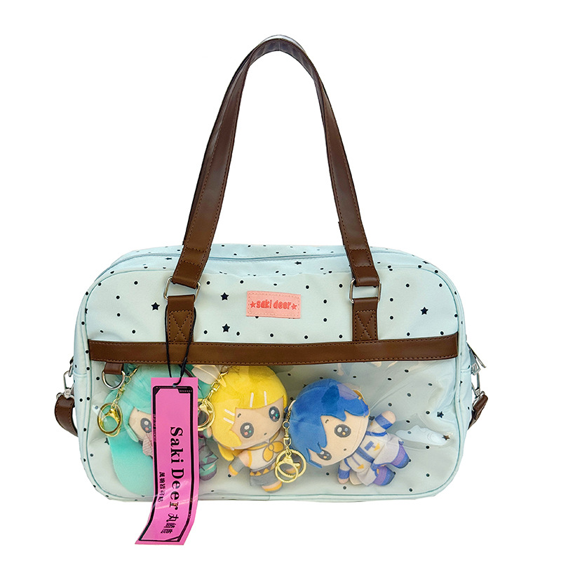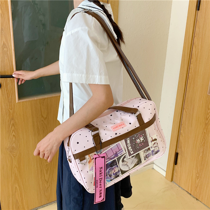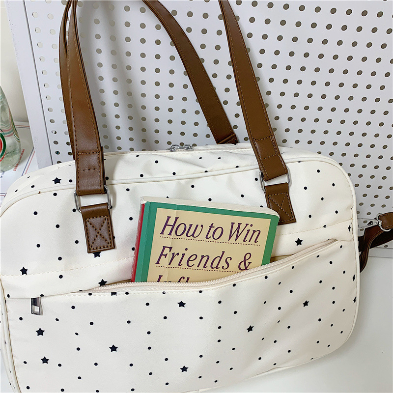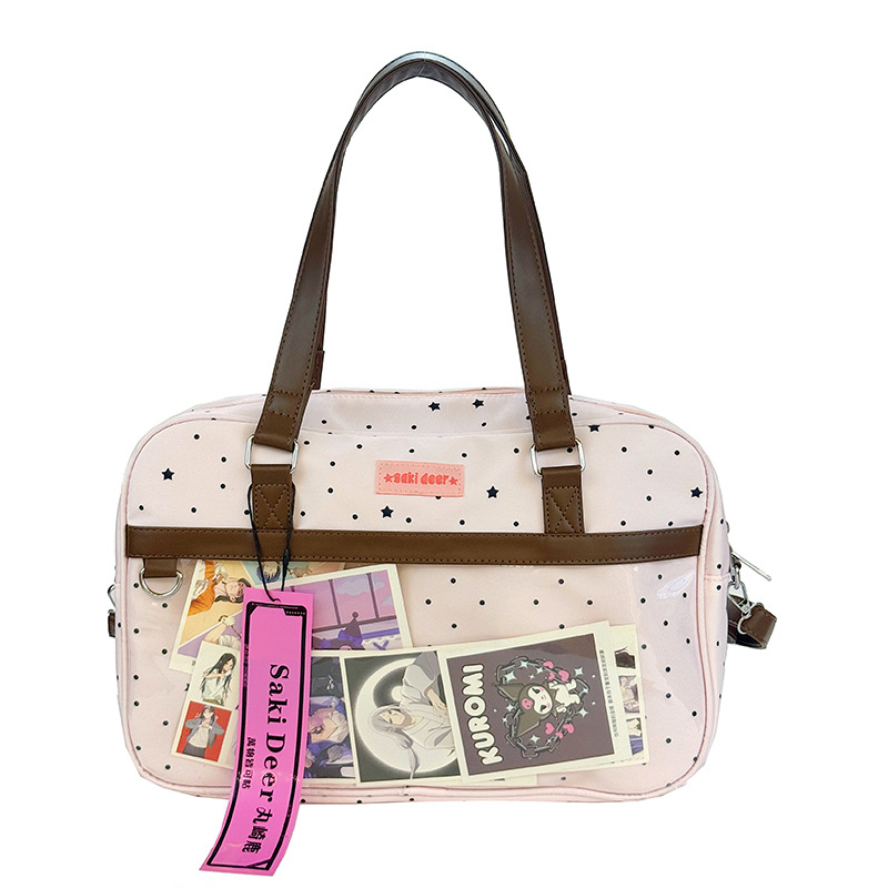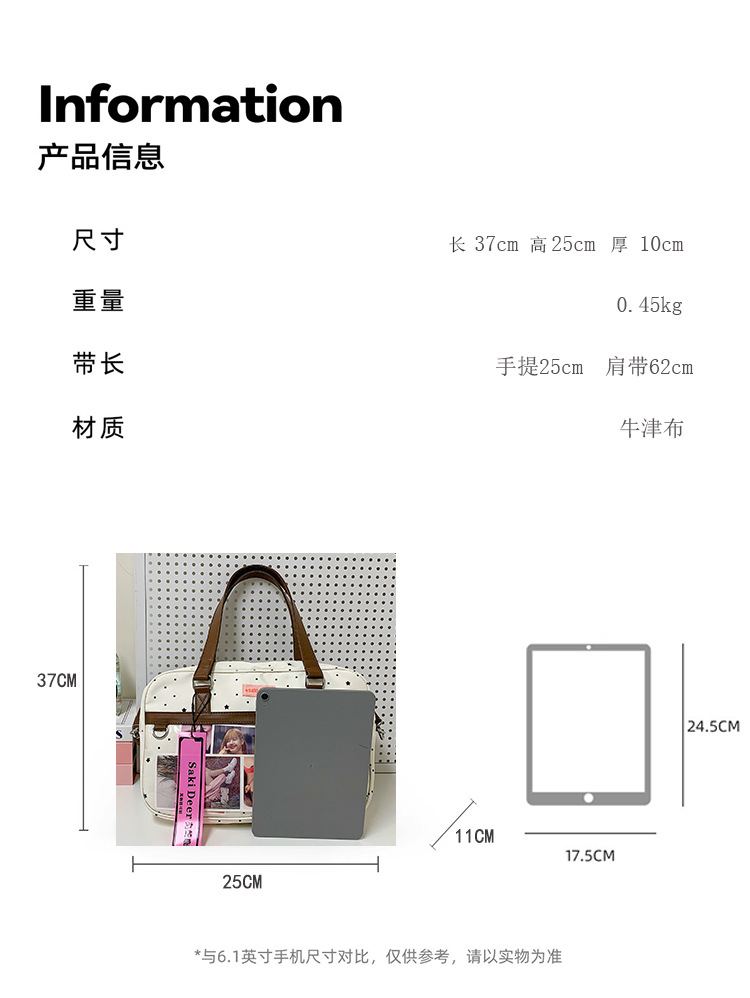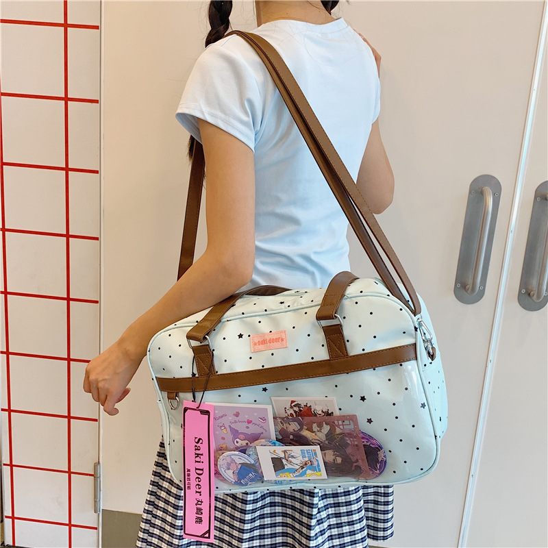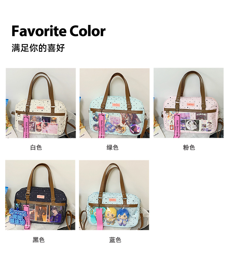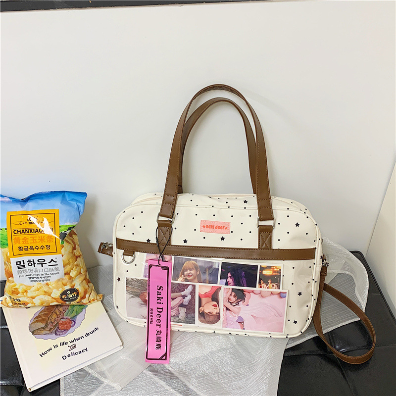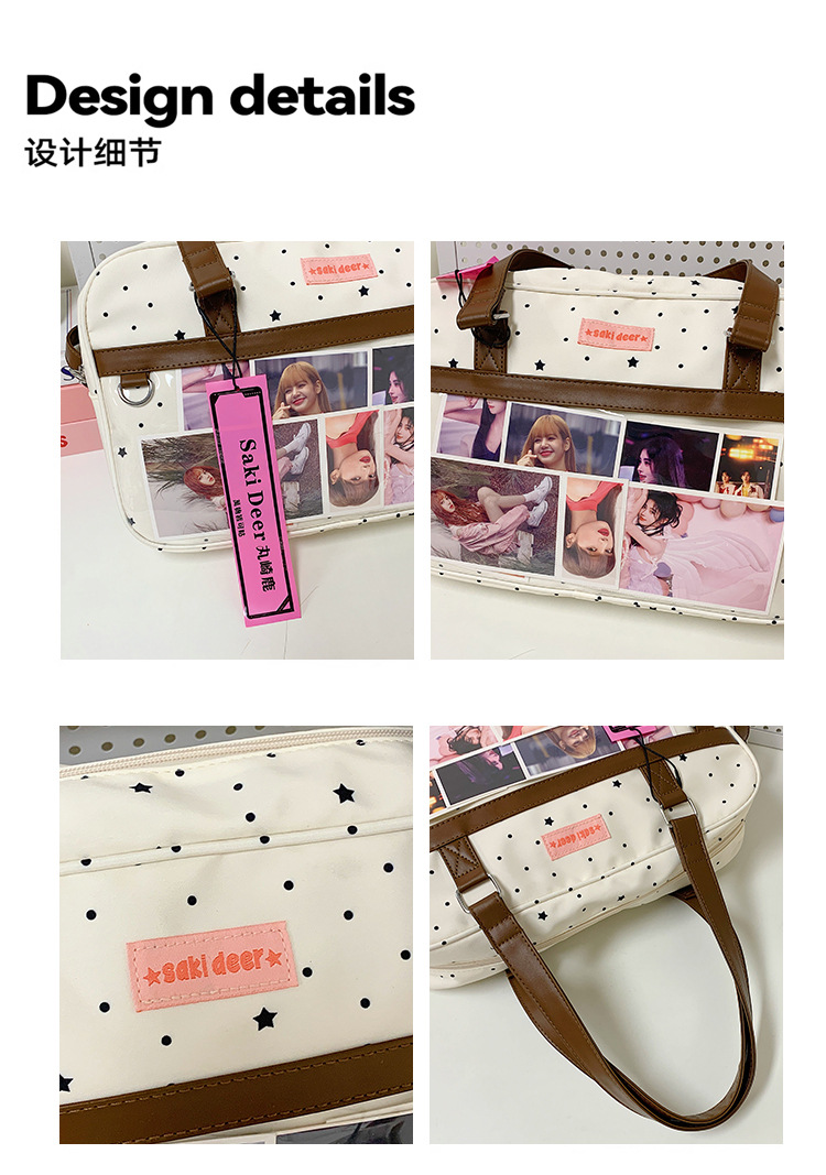 薄巧星痛包可爱波点星星日系痛包单肩包上课包通用帆布包双层透明