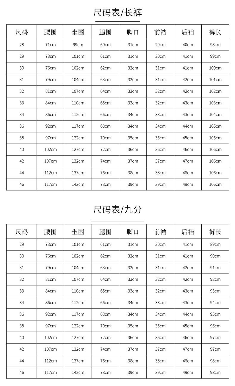 黑色-九分,宝蓝色-九分,深灰色-九分,卡其色-九分,黑色-长裤,宝蓝色-长裤,深灰色-长裤,卡其色-长裤,九分黑色-加绒,九分卡其色-加绒,加绒+8元