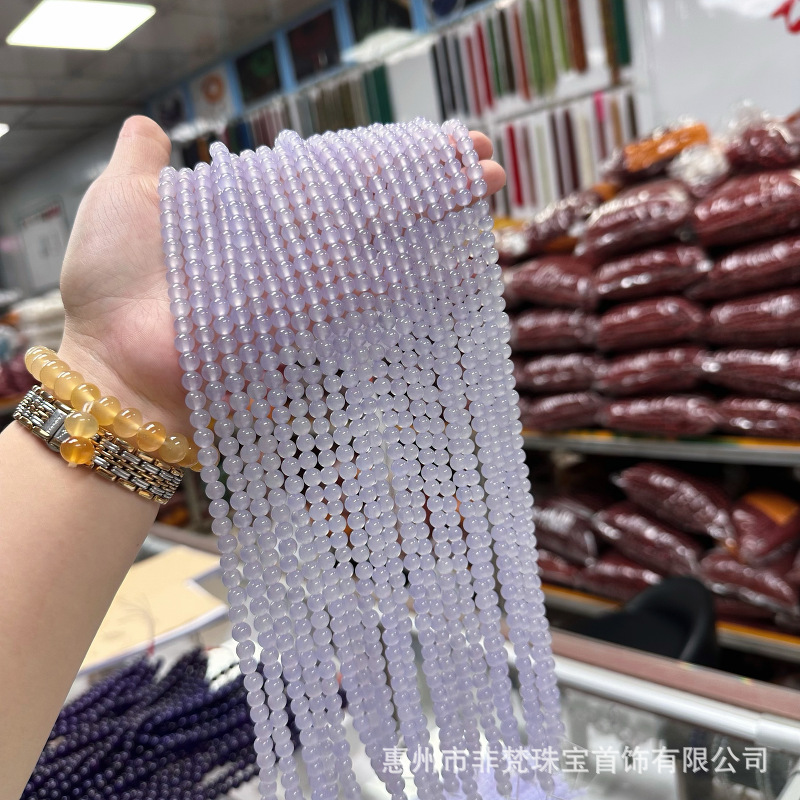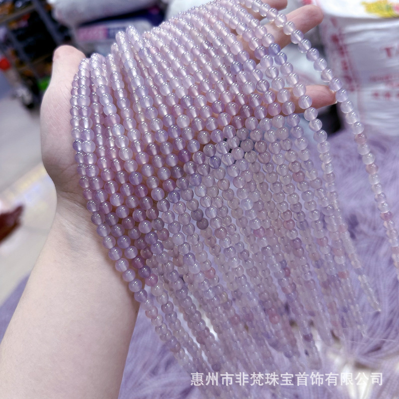 冰种紫罗兰玛瑙散珠圆珠浅紫玉髓DIY手工配饰手链项链配饰批发