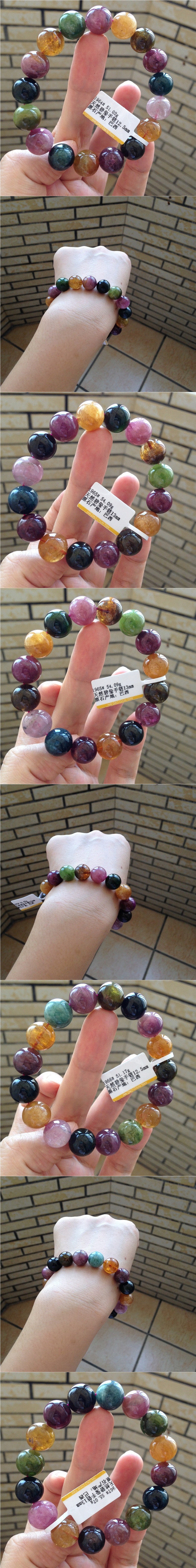 天然水晶ブラジル老鉱黒糖碧璽手串虹キャンディーブレスレット女プレゼント一物一図