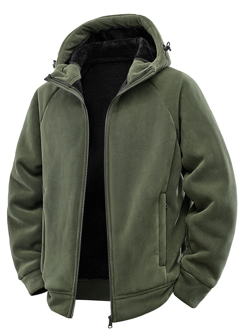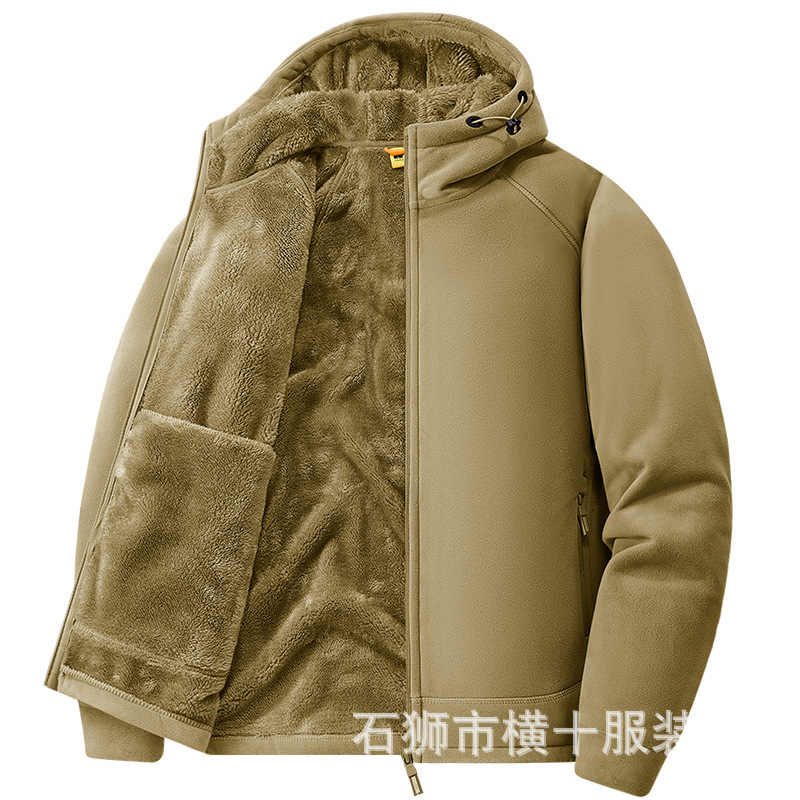 外贸抓绒衣连帽外套秋冬加绒保暖时尚上衣百搭户外运动摇粒绒棉服
