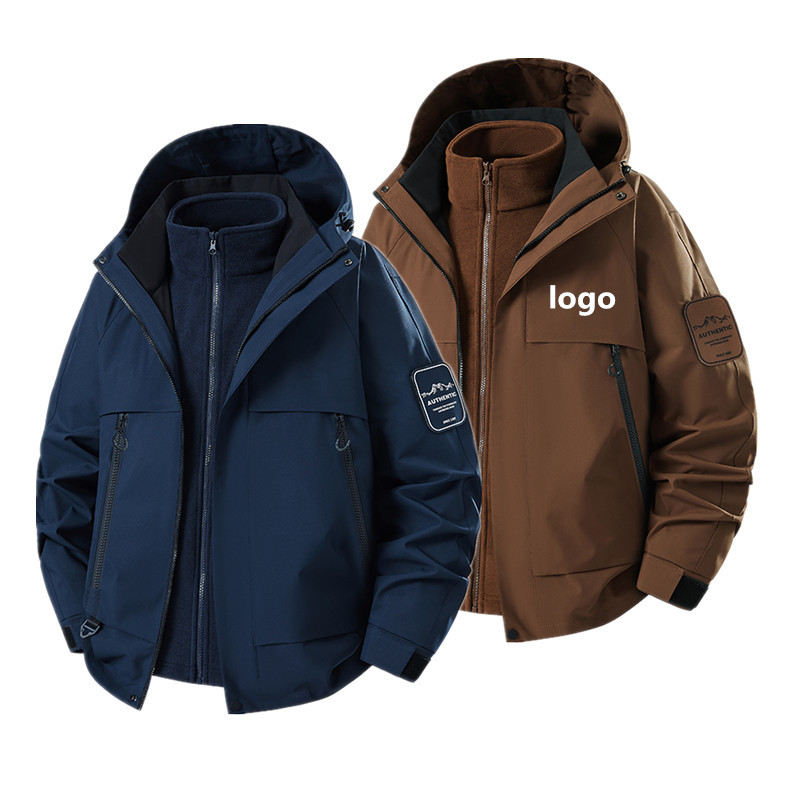 スリーインワンジャケットメンズカスタムロゴアウトドアフリースツーピース防水秋冬グループ作業服女性用プリント