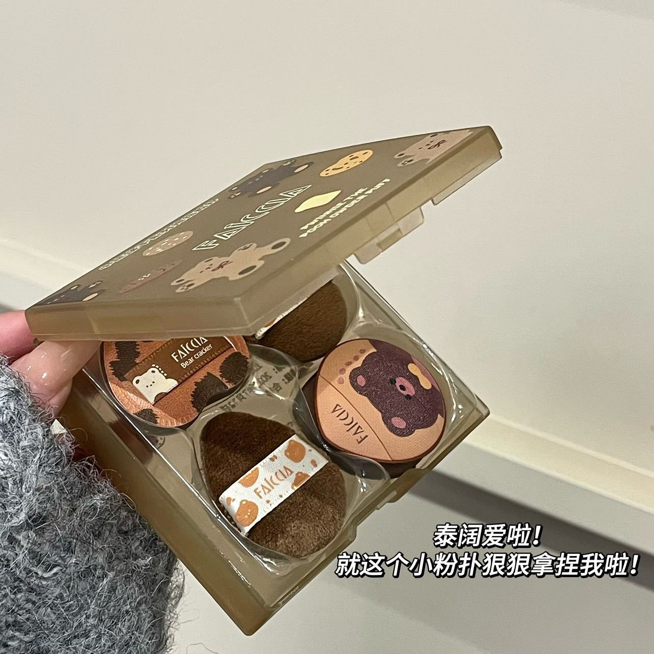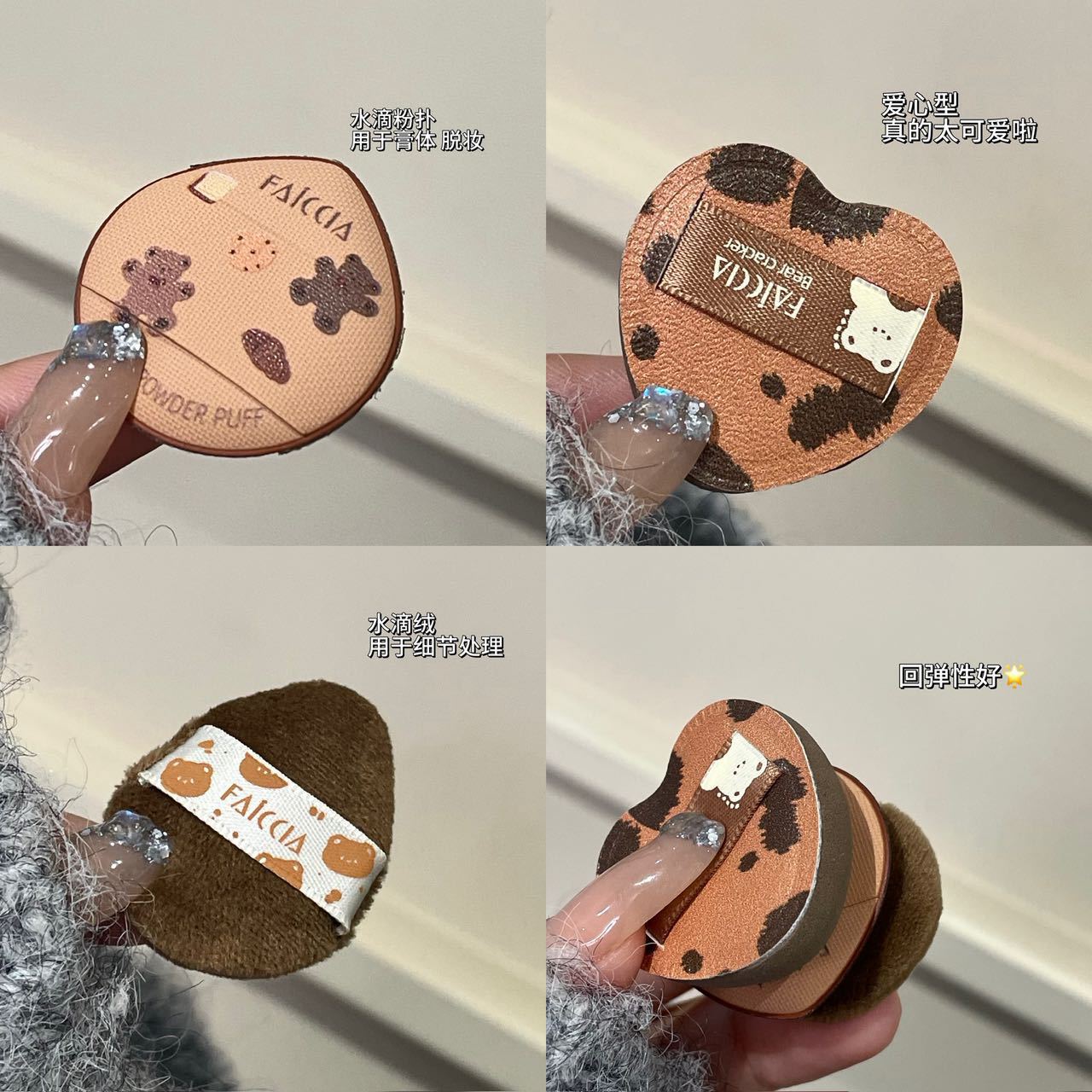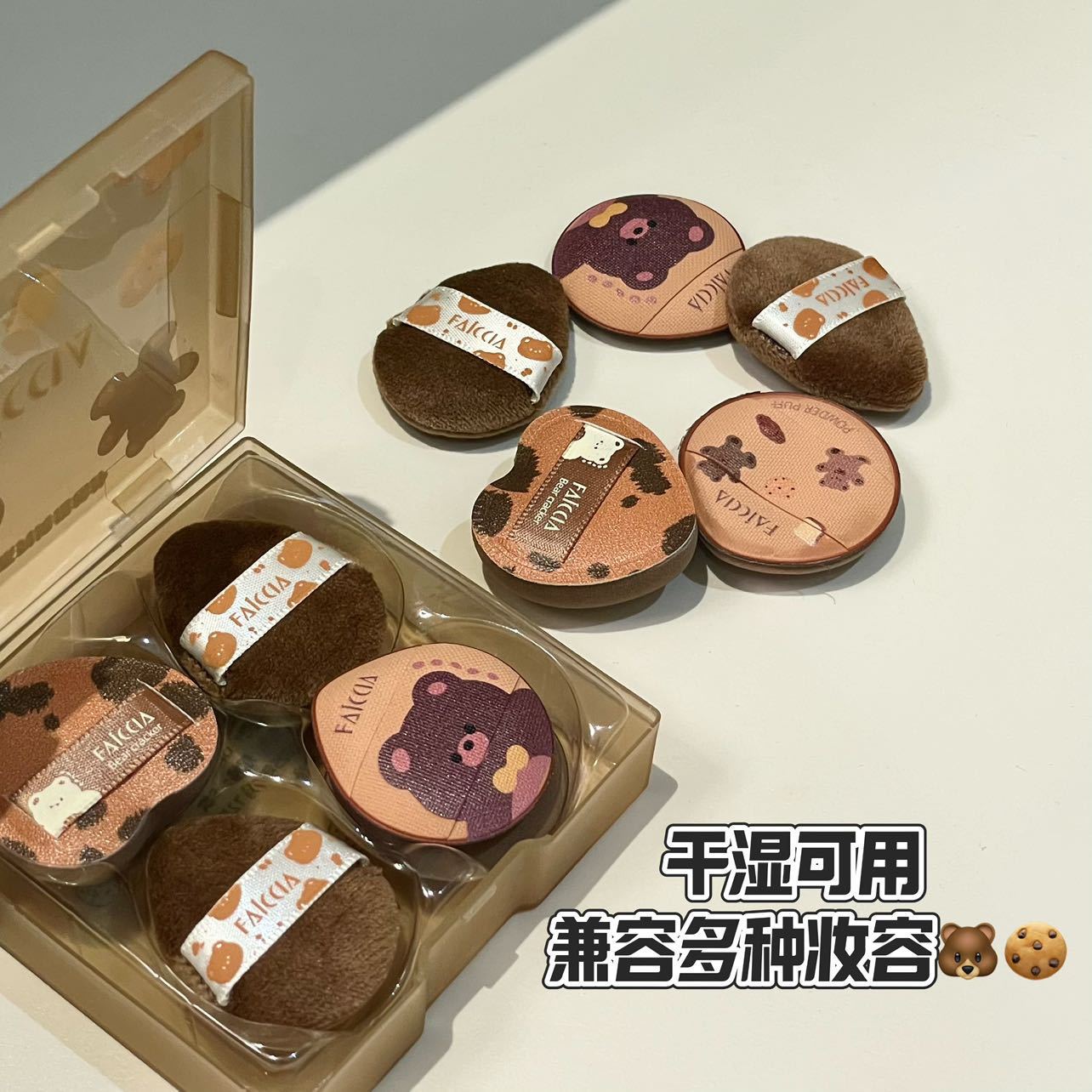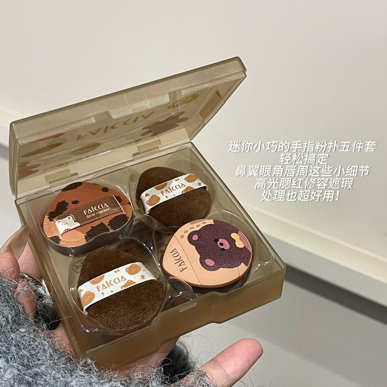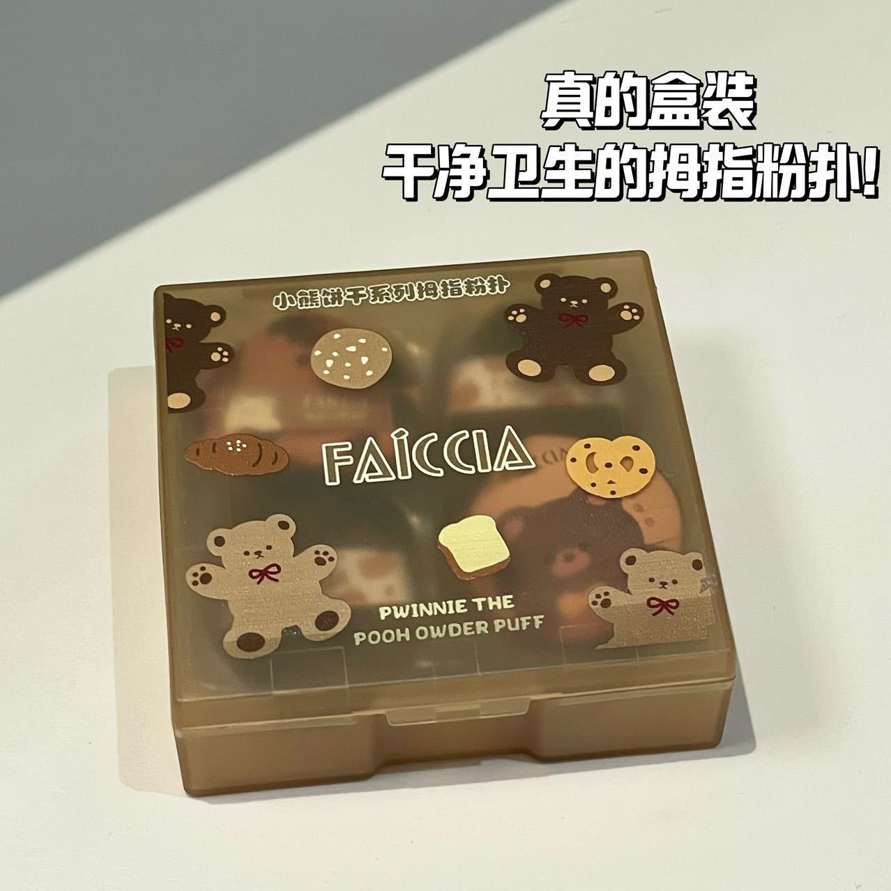 FAICCIA 小熊饼干拇指粉扑套盒植绒海绵定妆亲肤迷你细节小萌粉扑