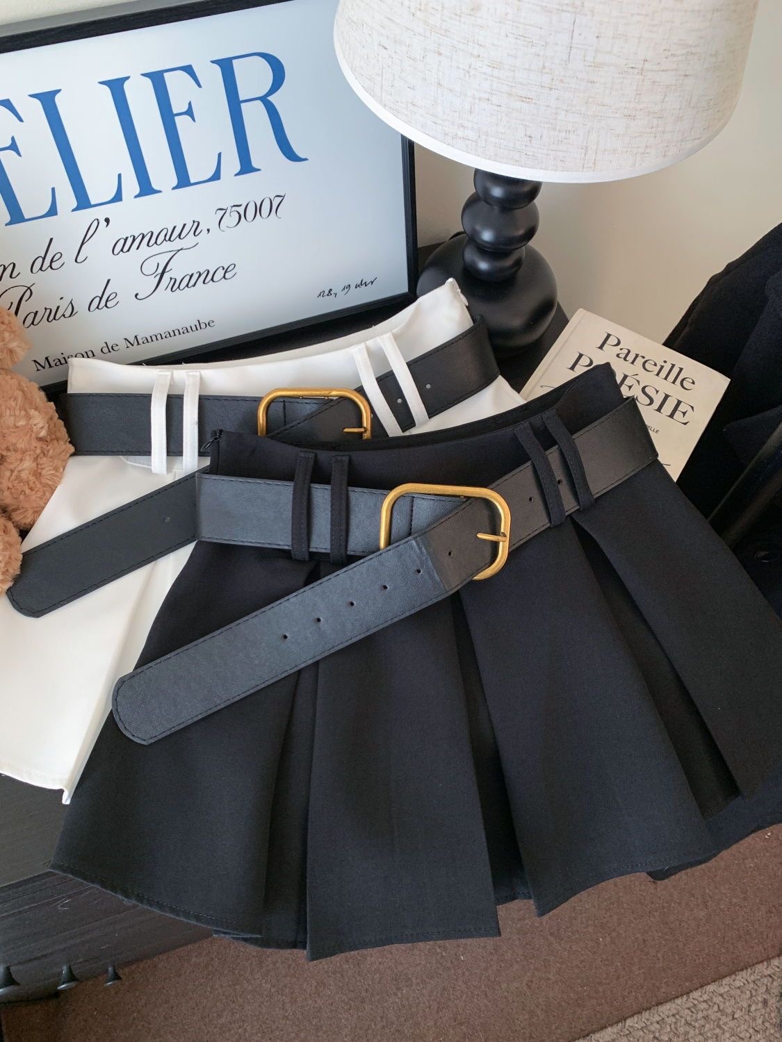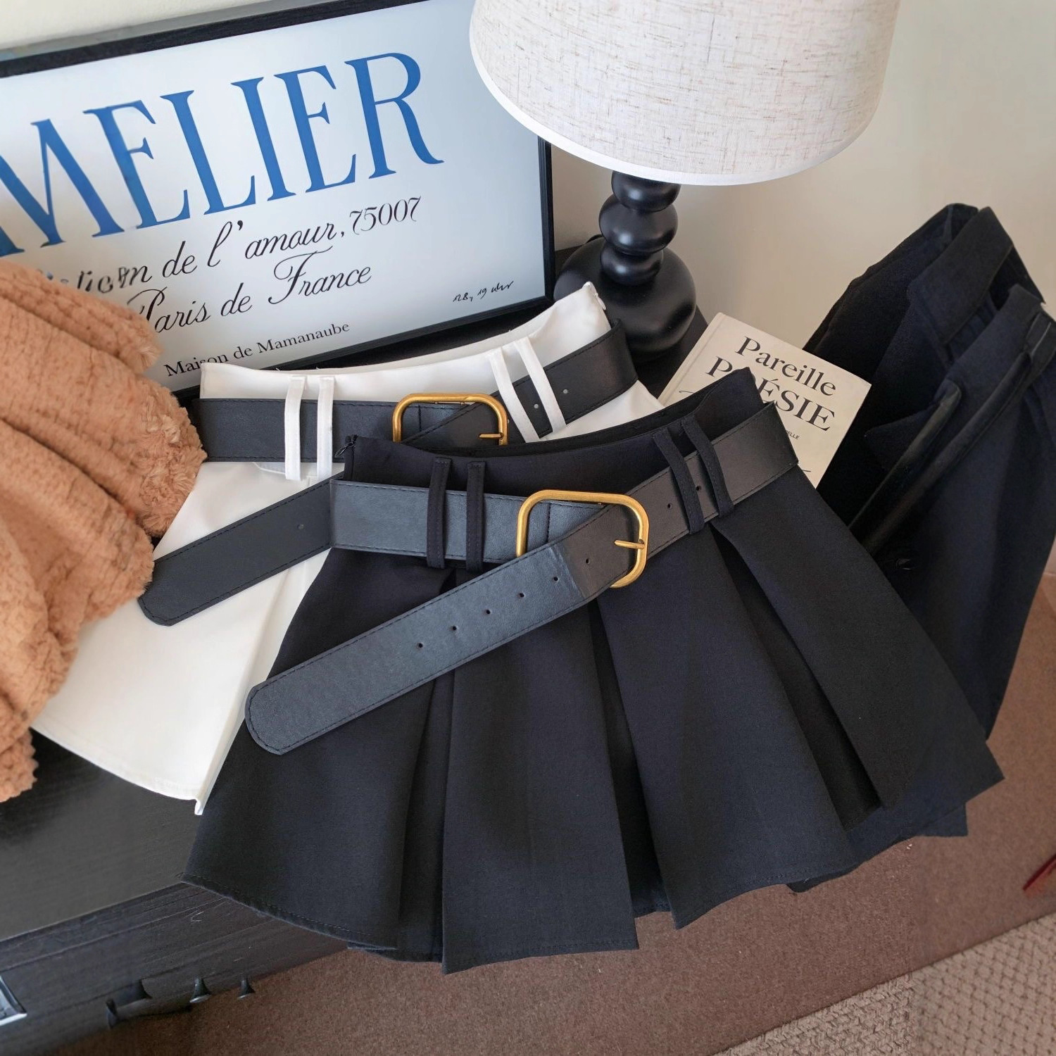 女の子用レザーショートスカート 2026秋 ドローストリングPUスカート 伸縮性ハイウエスト ドローストリングプリーツ ヒップカバーショートスカート バンド付きスカート